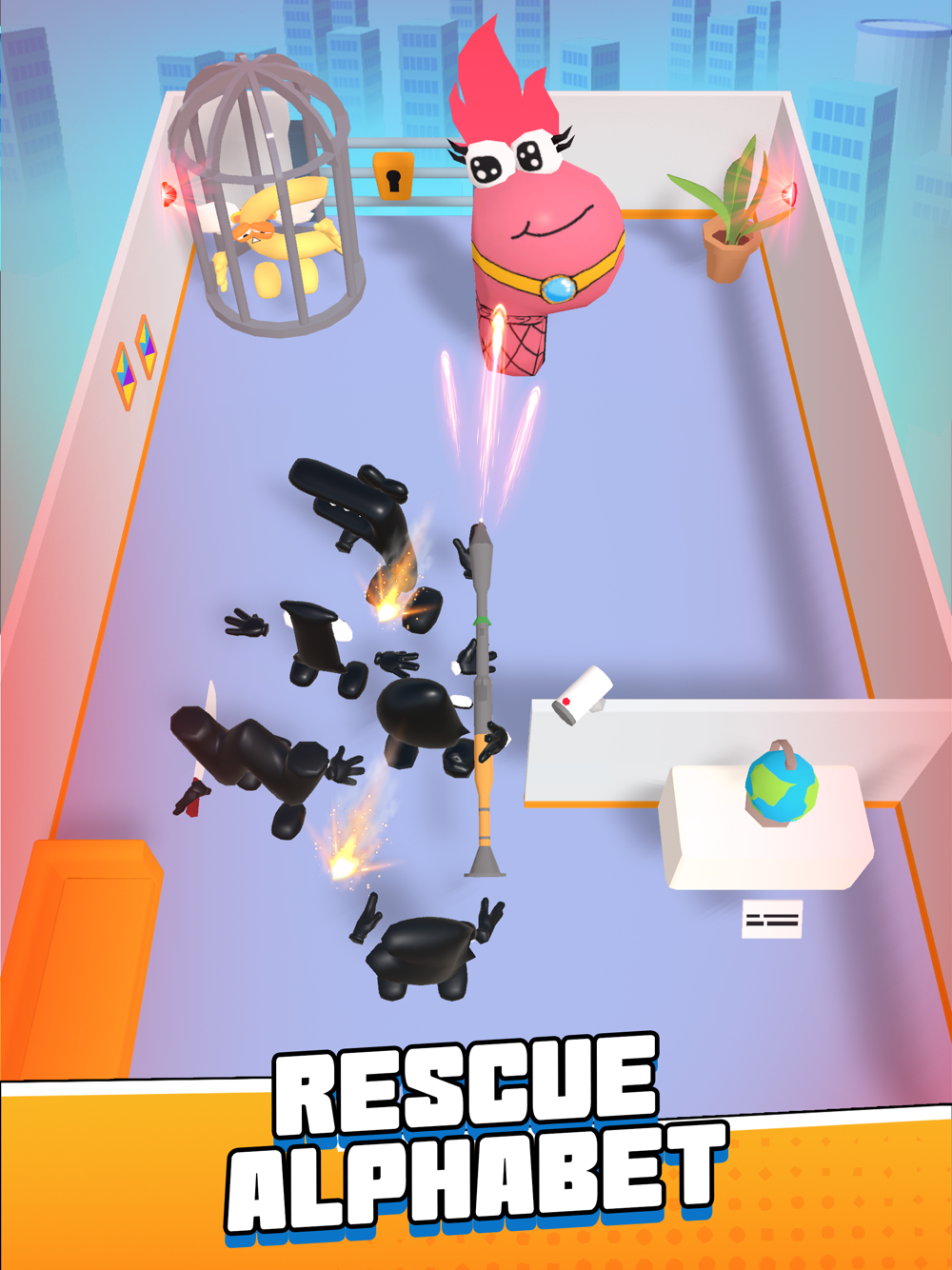 While hanging out, unfortunately, the enemy ambushed the Aphabet team. Become Hero F and gain the power to fight the enemy and rescue the Alphabet team. The ability to clone different enemies will help you quickly infiltrate the enemy's lair without being detected. In addition, you can use the enemy's skills after mastering the clone. Let's use your skills appropriately.