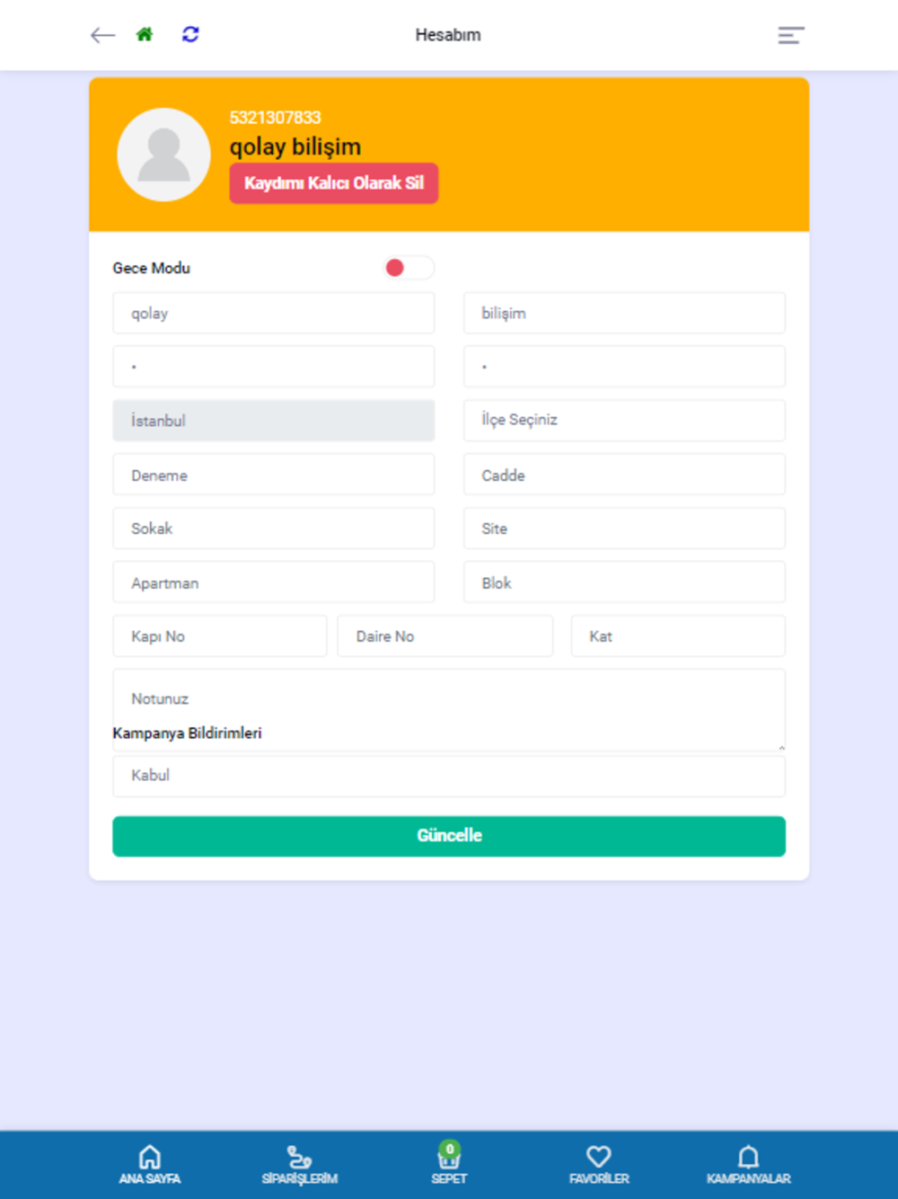 Online olarak sipariş verebilmenize, Sipariş detayı ve Tekrarlana bilmesi, Kişisel verilerinizi yönetebilmeniz, Farklı ödeme kanalları ile ödeme işlemlerinizi yapabilmenizi sağlamaktadır.