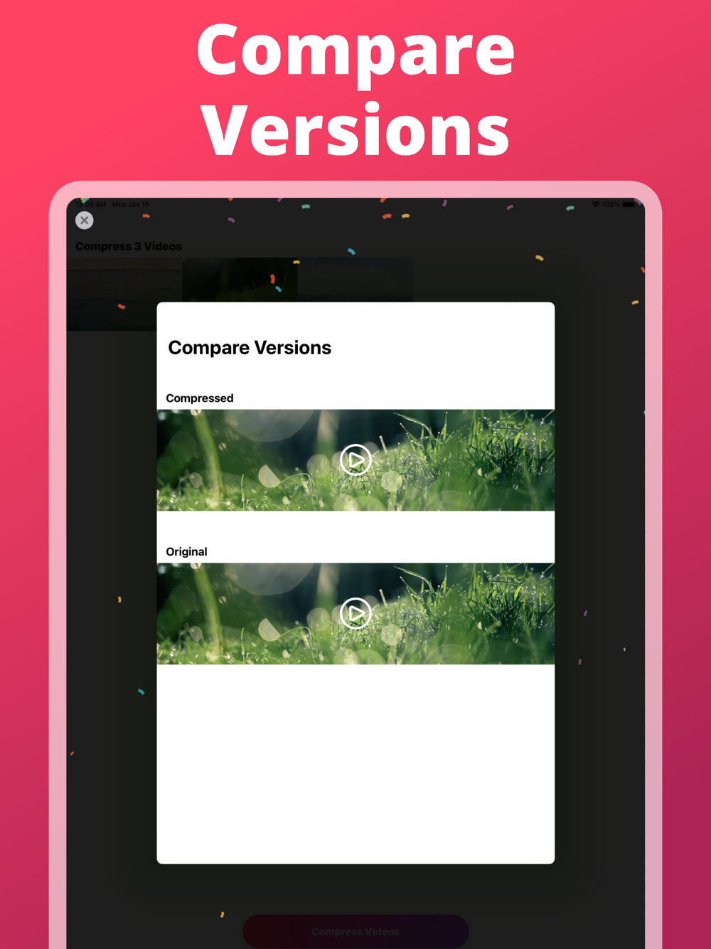 Use the app to get extra storage by choosing videos to compress and choose your desired approximate size for your compressed videos.