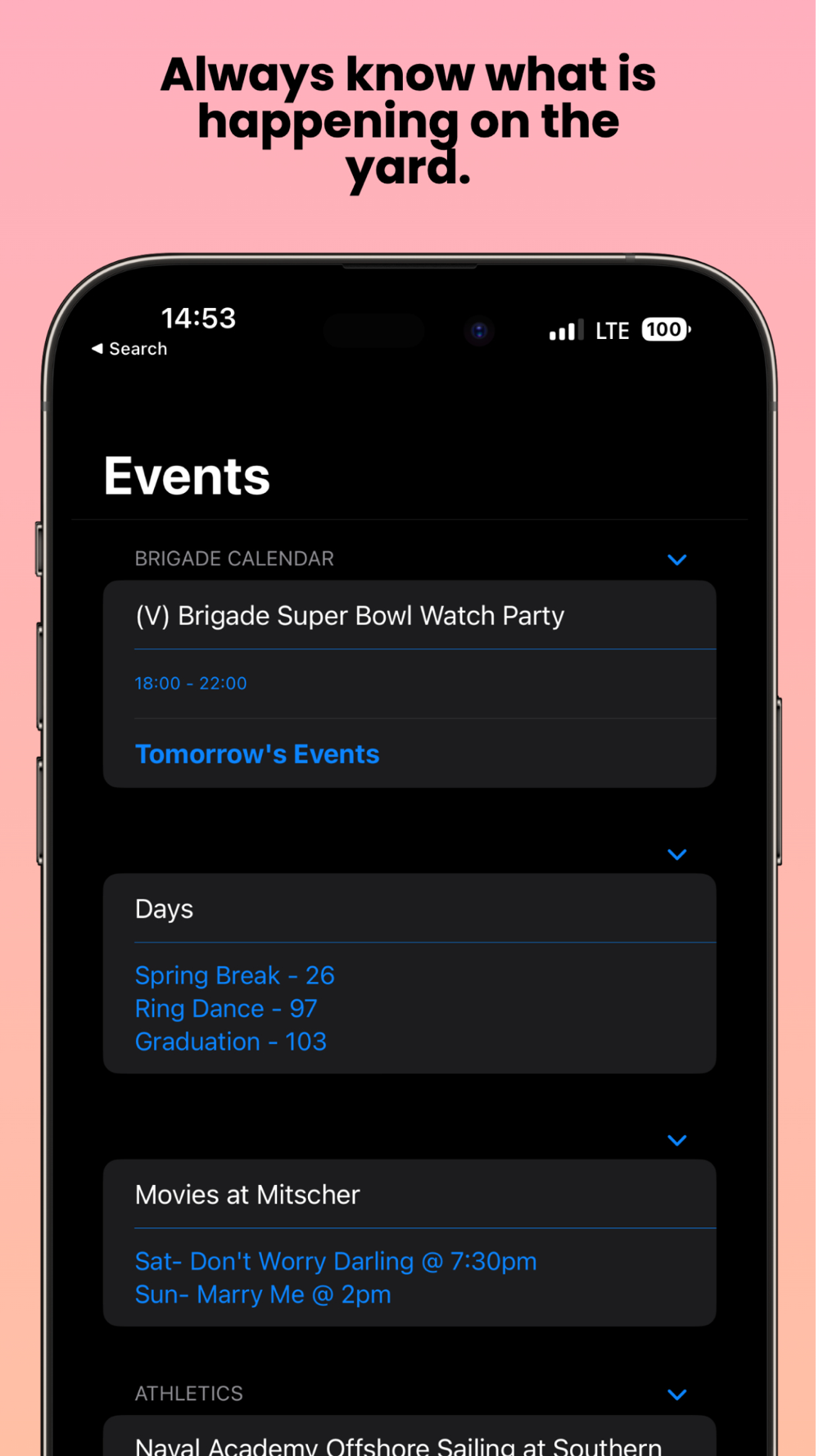 Always stay up-to-date with what is going on at the US Naval Academy! Gouge (short for Bill's Gouge) is designed to improve efficiency within the Naval Academy. It puts the Brigade's most searched information such as the meals, important numbers, and Brigade events all in one place.