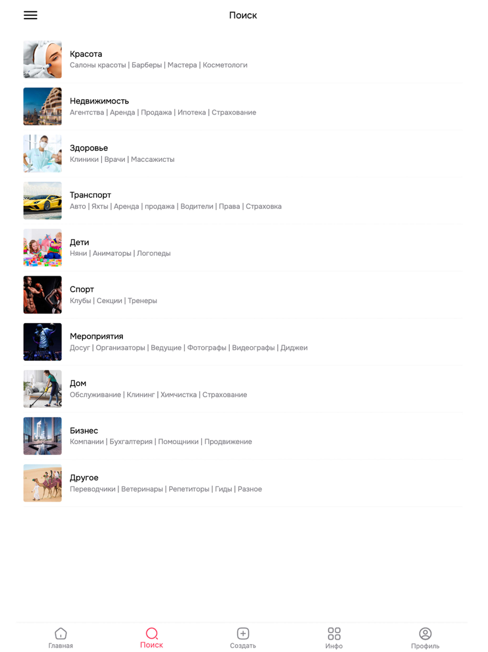 Поиск специалистов и компаний: Независимо от того, нужен вам профессионал для ремонта, перевода, организации мероприятия или любой другой услуги, наше приложение поможет вам найти лучших специалистов и компании в Дубае. Вы сможете ознакомиться с их профилями и связаться с ними напрямую.