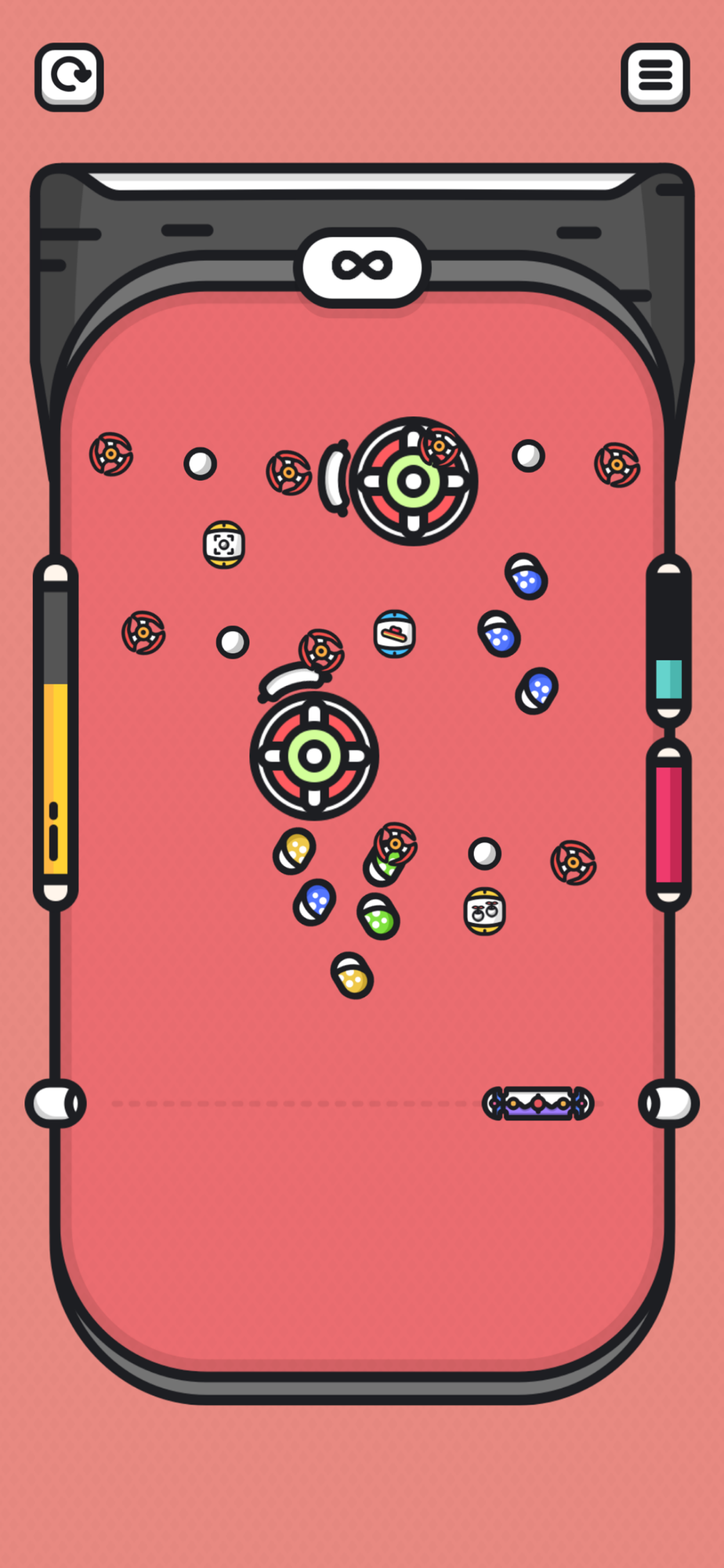 Knock out the colored blocks, gather the white blocks to get points and complete each level successfully. Make sure not to miss the ball from falling to its death.