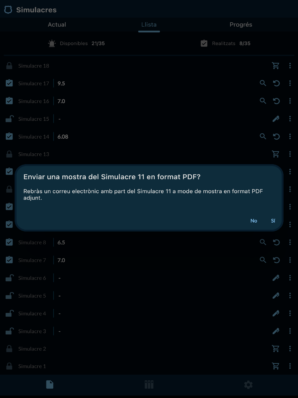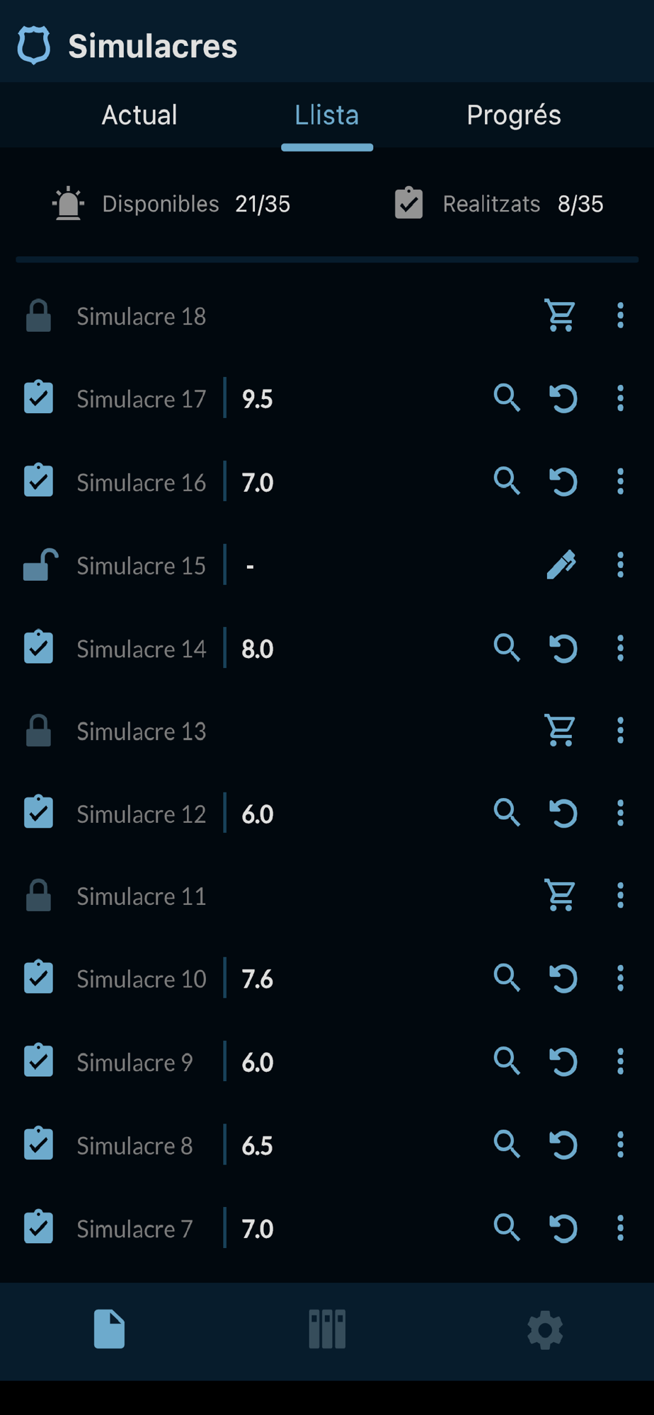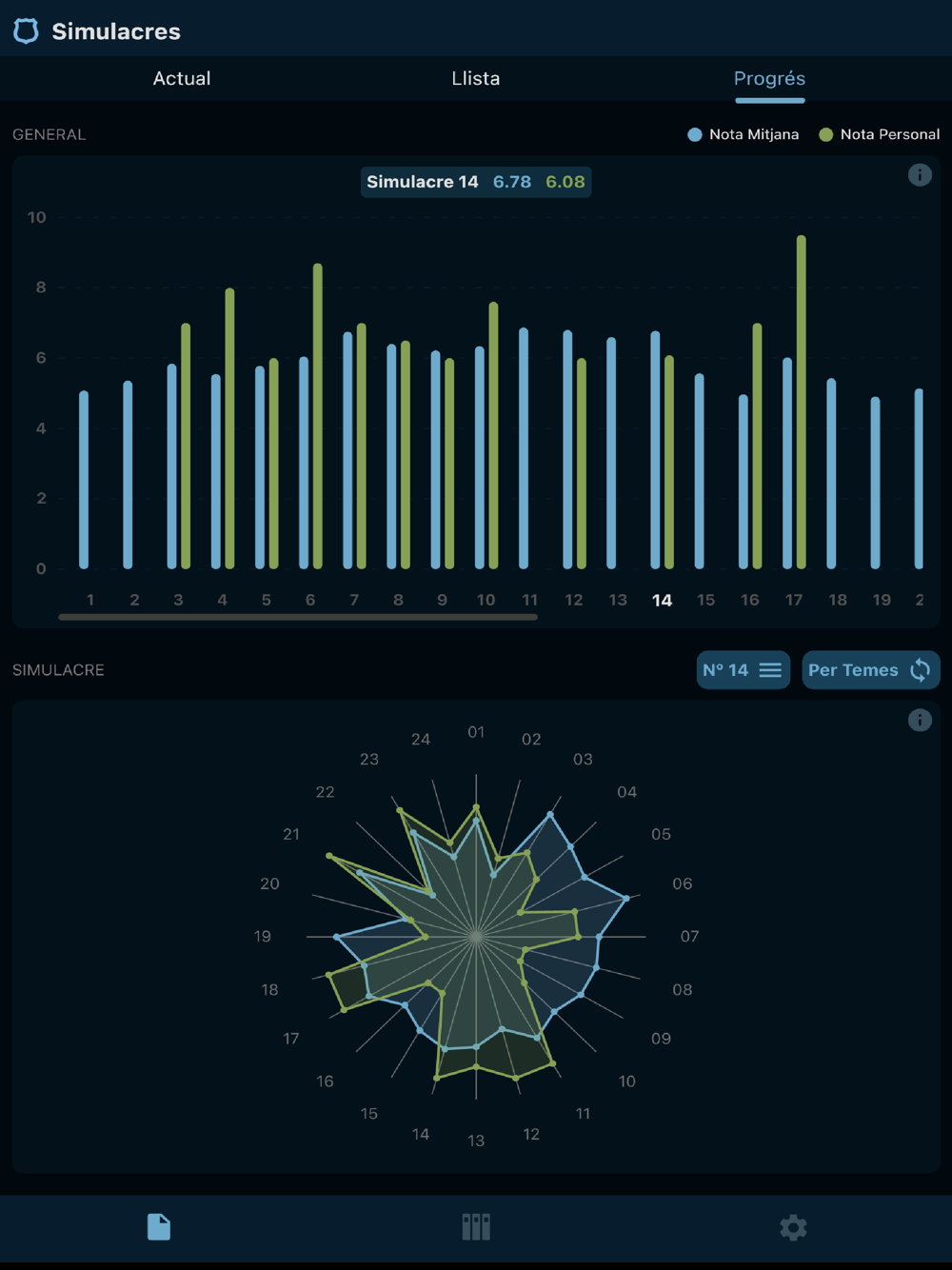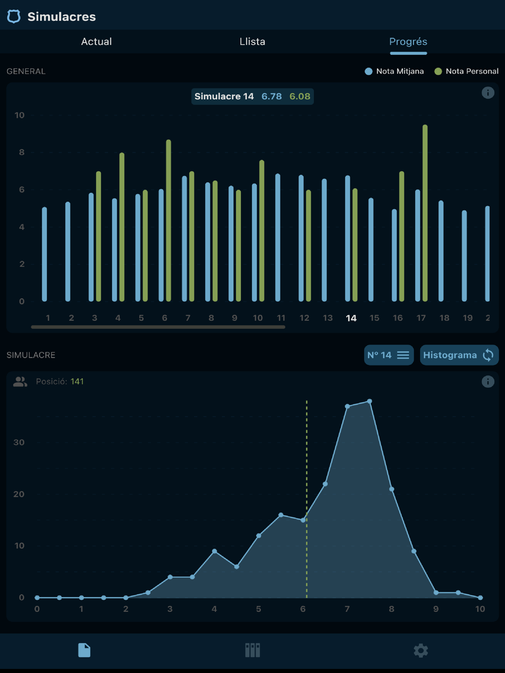 - Disposaràs d’un seguiment del teu progrés en simulacres a partir d’un gràfic.