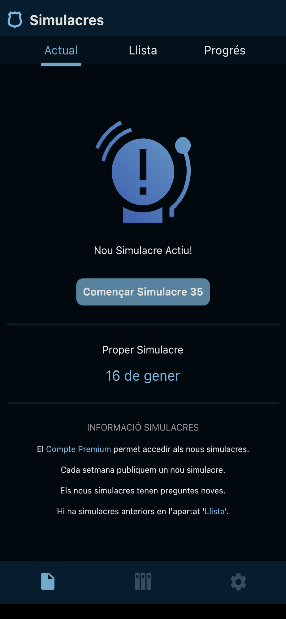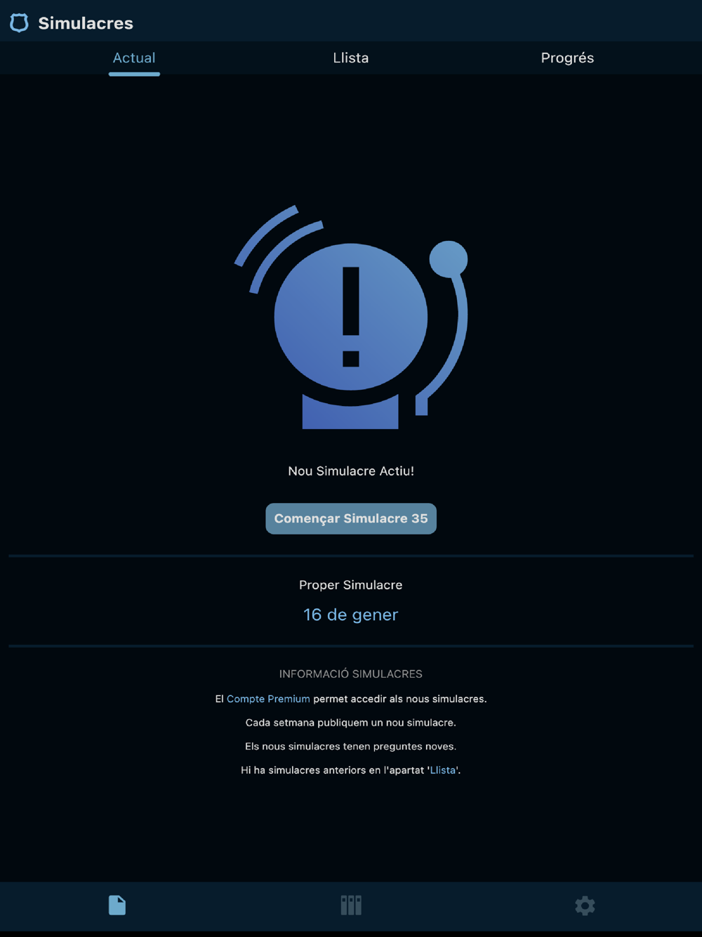 - Rebràs un simulacre d’examen amb 35 preguntes noves cada dues setmanes, elaborat específicament de cara a la preparació de l'examen de coneixements de la Generalitat de Catalunya.