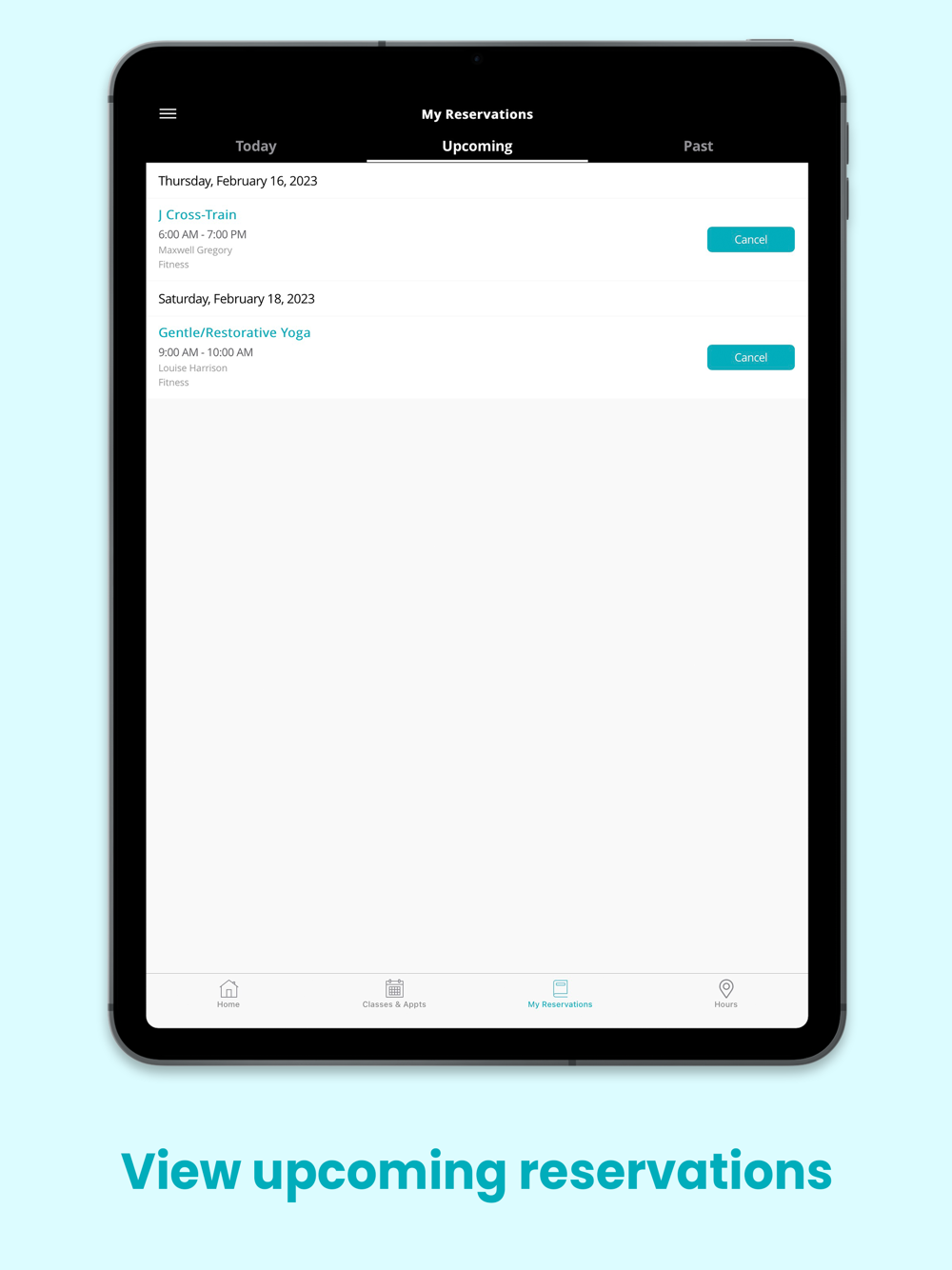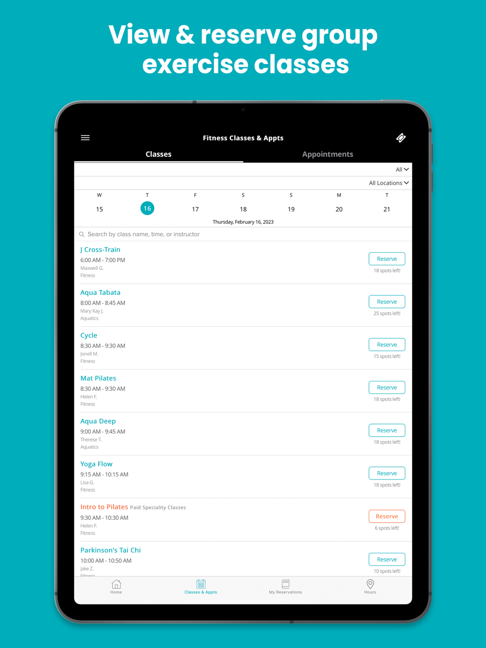View, search and reserve group exercise classes and paid small group and Pilates classes.