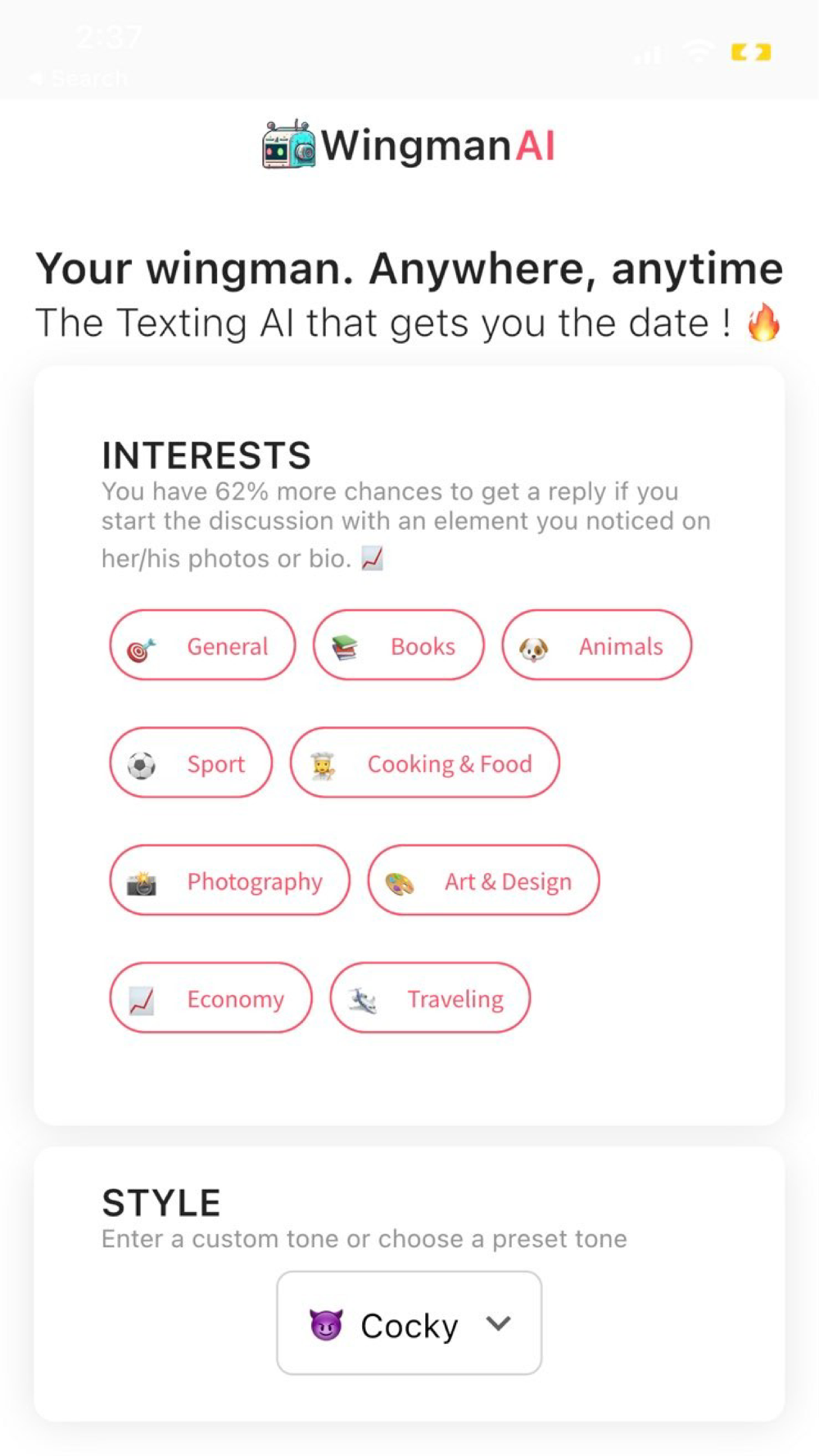 Alfred is the ultimate wingman for your dating app journey. With our AI-powered messaging assistant, you can confidently send the right message to the women you're interested in. Our algorithm analyzes your conversations and suggests the best responses, giving you the best chance of success. Say goodbye to the stress and frustration of crafting the perfect message and hello to effortless dating with Alfred.