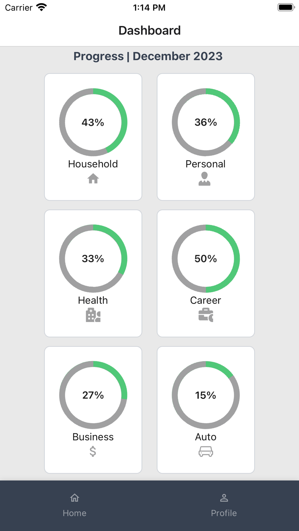 A utility tool that helps you stay on top of your tasks and visualize how much progress you're making. You can add new tasks to track and make any changes as you need. The dashboard gives you a birds eye view of how you are doing at a high level in a number of areas.