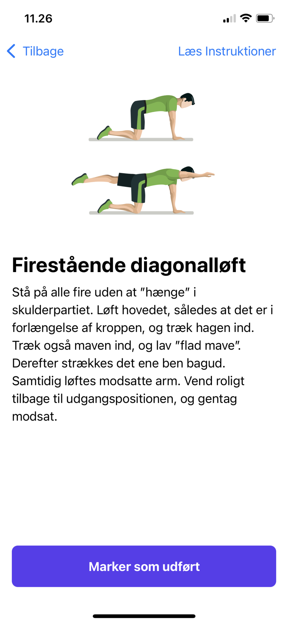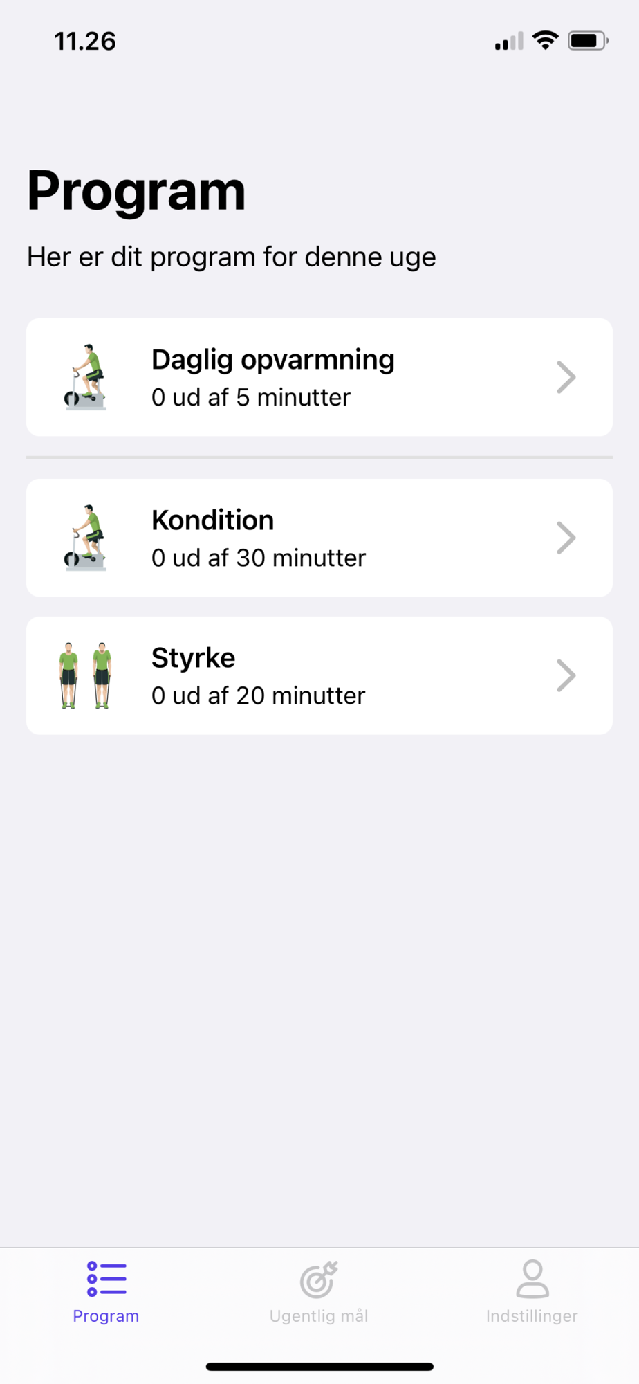 Træningsprogrammet kan udføres på under en time og kan udføres på arbejdspladsen eller i hjemme, uden behov for træningsmaskiner.