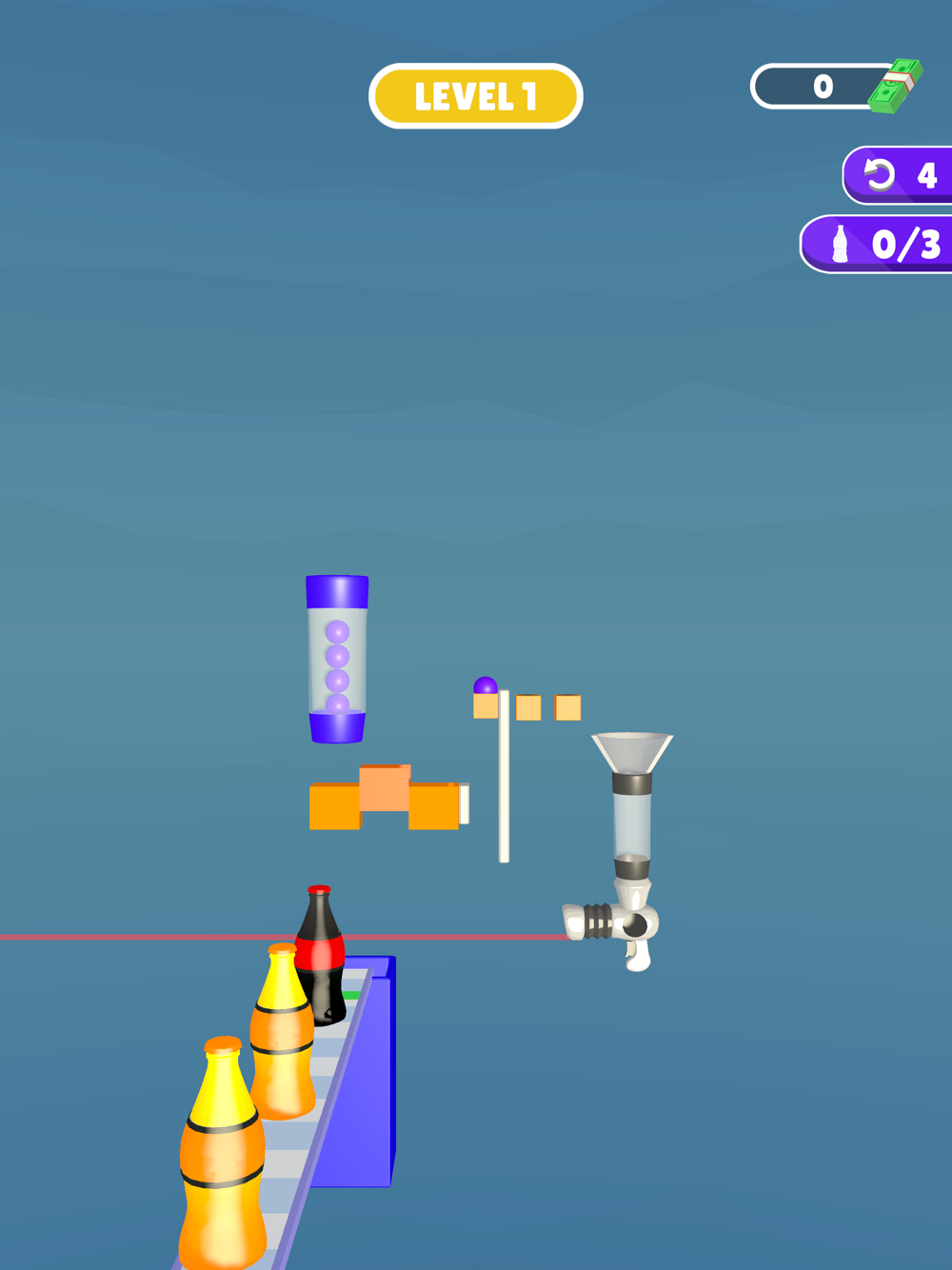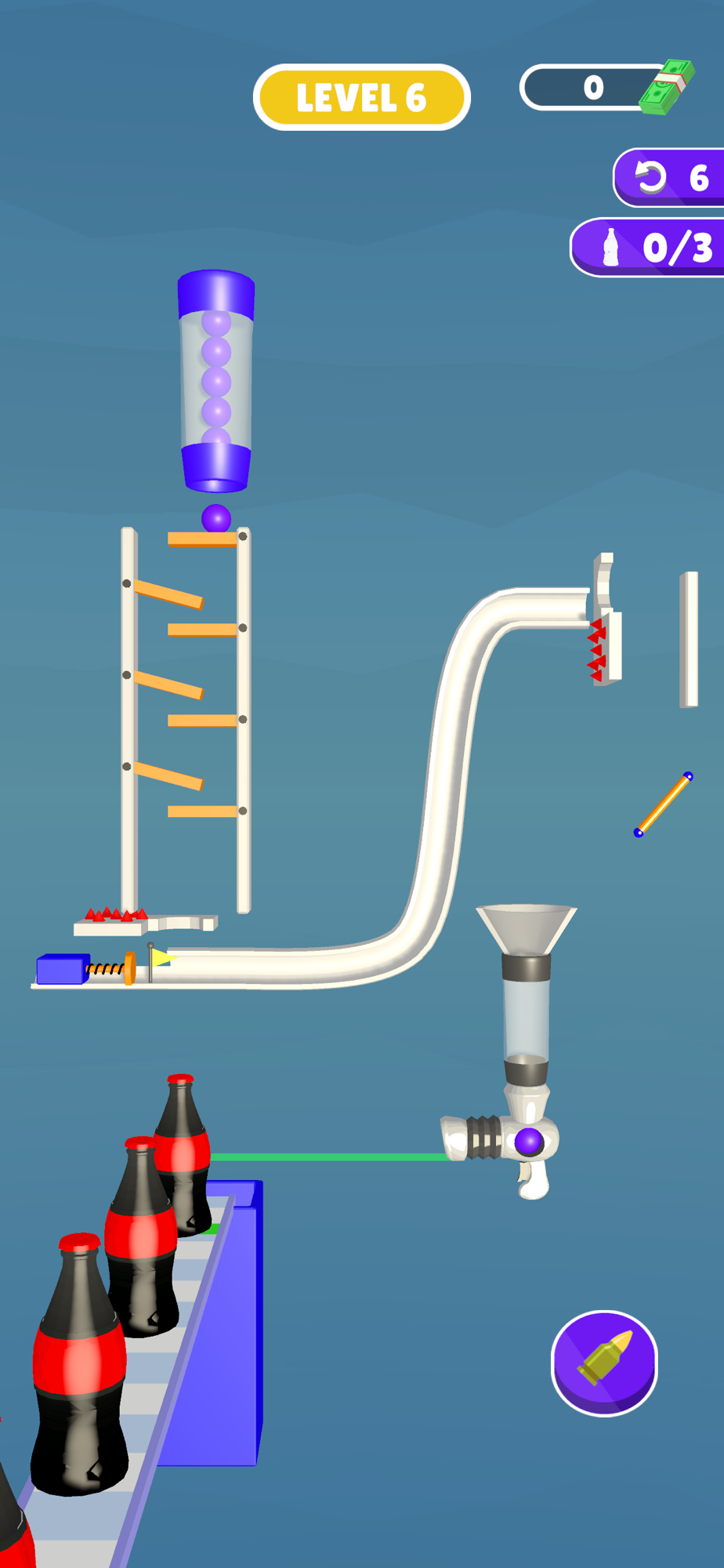The balls placed in this machine are like a bullet! Aim the bottles with the laser launcher.
