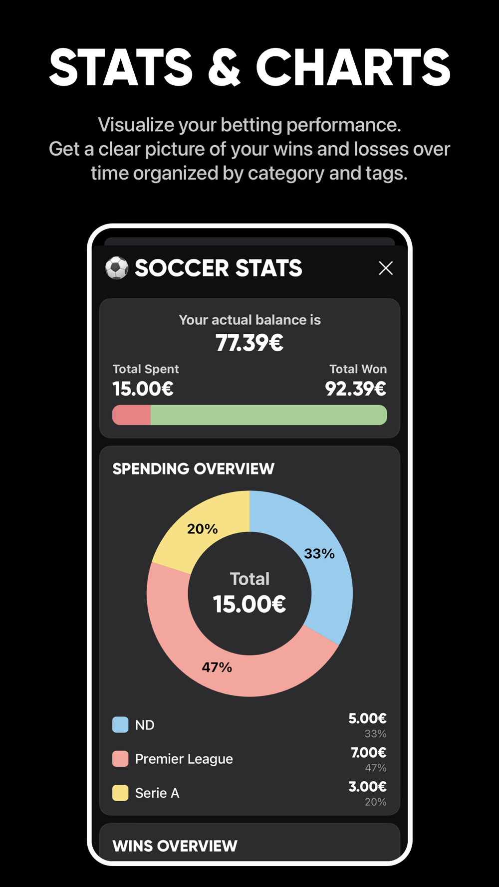 • Monitor your performance: Get a clear picture of your betting performance with detailed stats, including ROI, win rate, and total profit/loss.