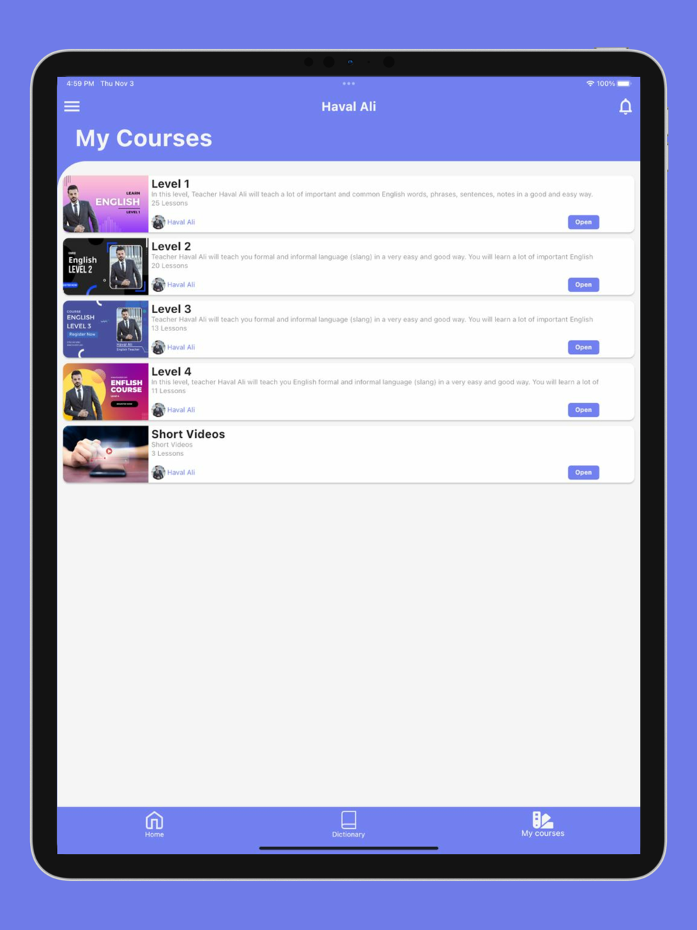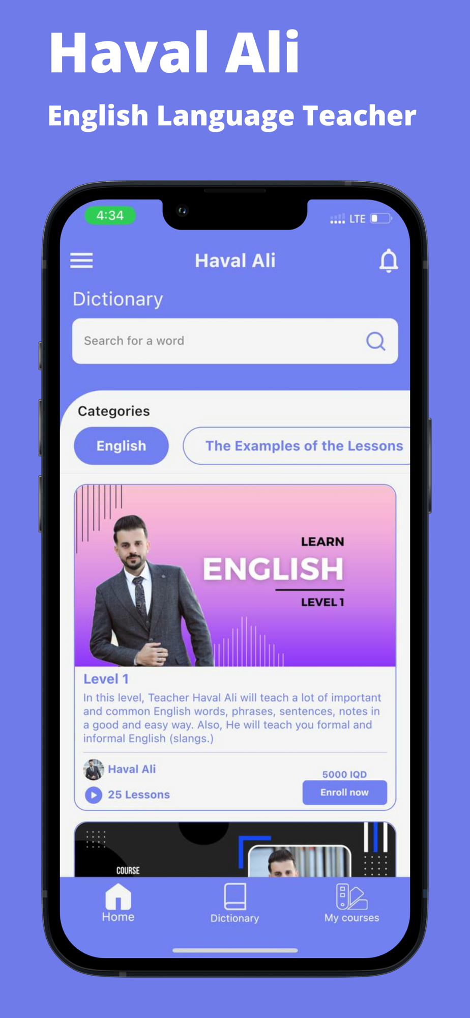 In this app, teacher Haval Ali will teach you formal and informal English (slang.) in the best way. You will learn a lot of important English words, phrases, phrasal verbs, common mistakes, notes, and sentences in a very easy way. You will be able to talk and write in English fluently and easily enough.