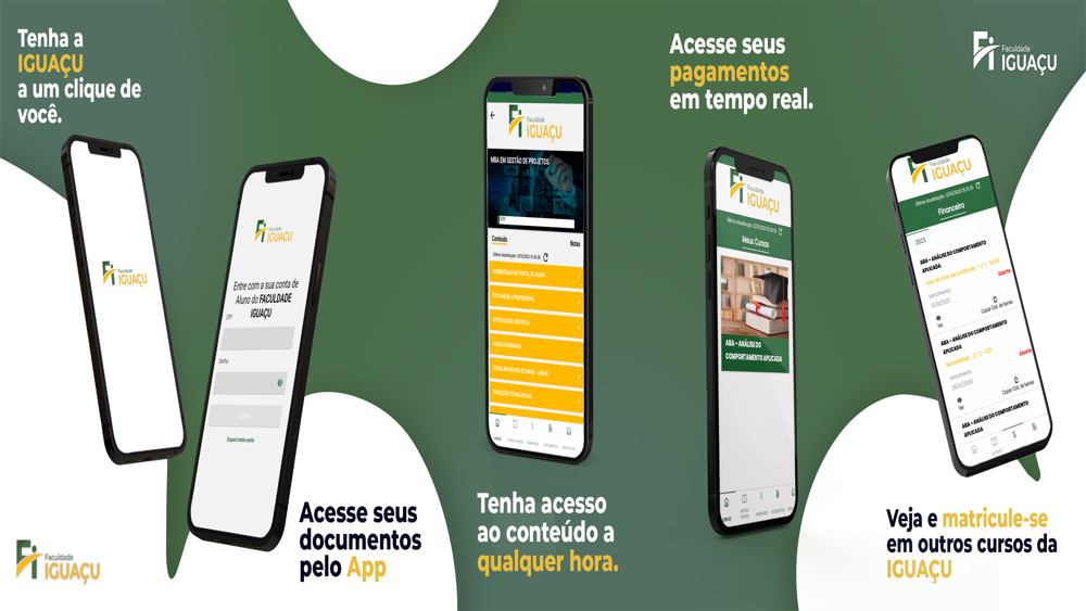 ▶ Visualizar todos os cursos que a Faculdade Iguaçu oferece para você, além de possibilitar a realização da matrícula em cursos direto pelo App.