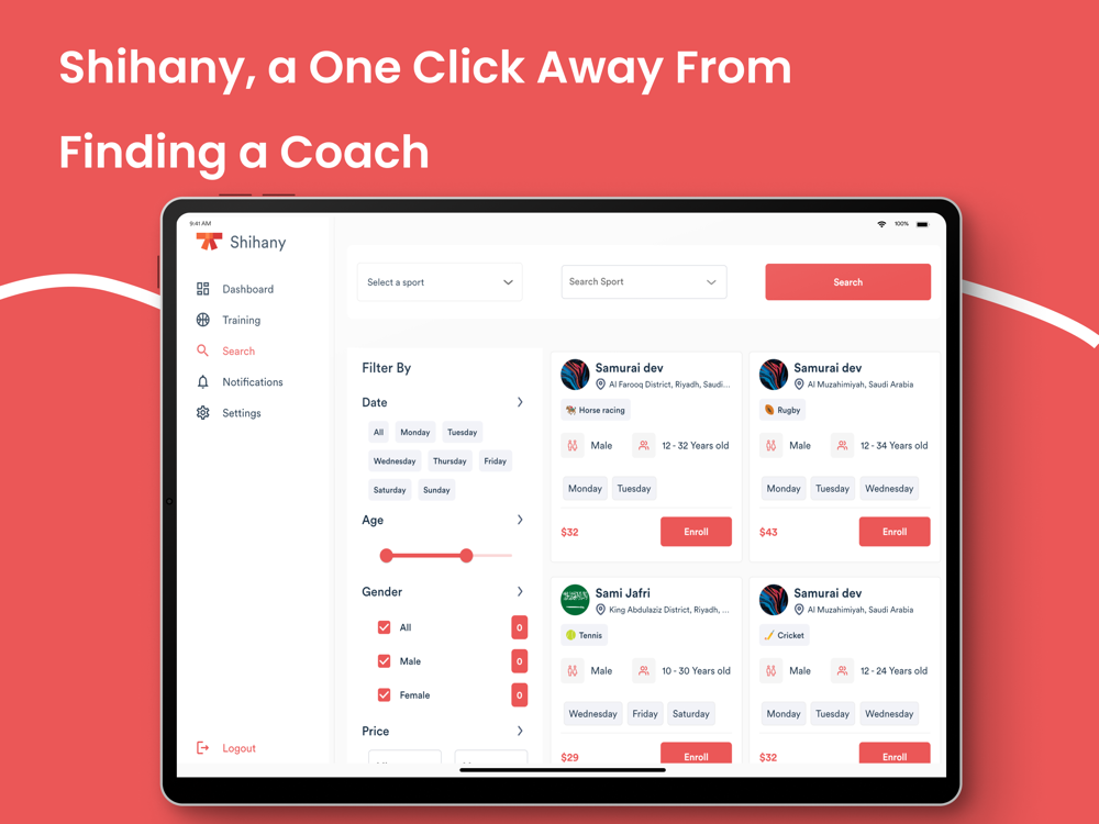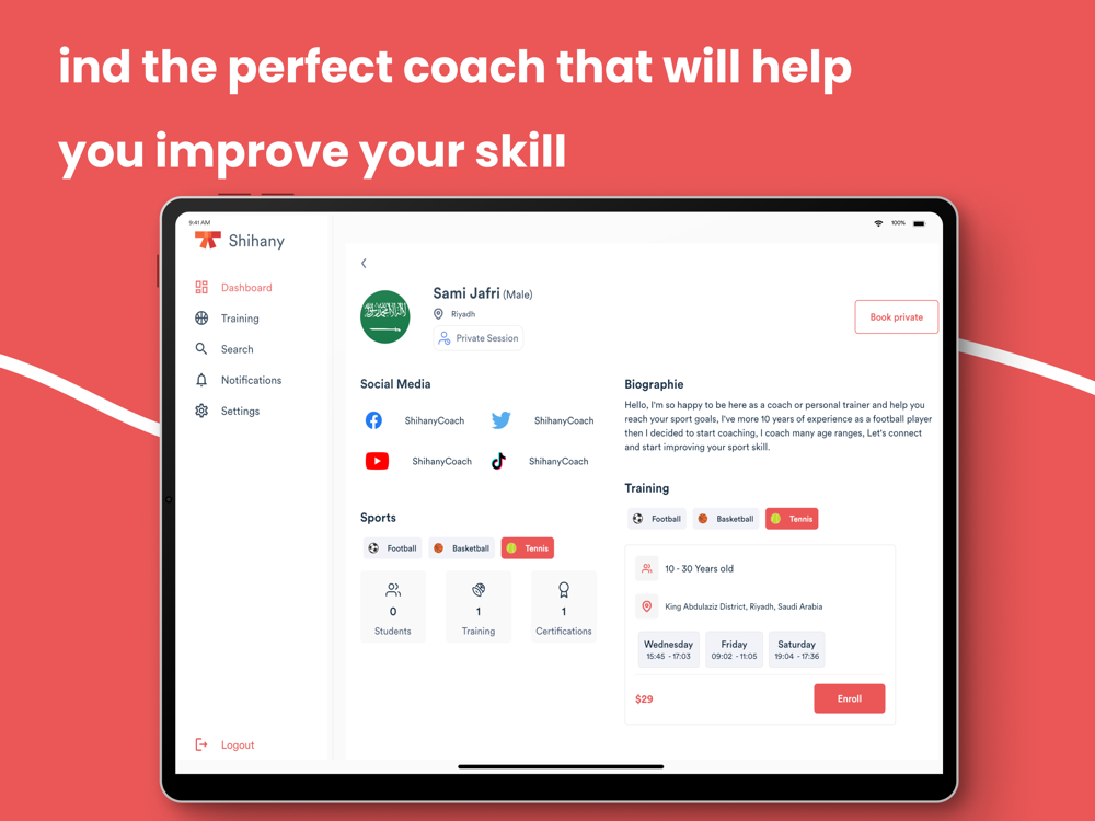 Shihany gets your back, and with a bunch of experienced coaches, you can select the perfect one for you with different sports to choose from.