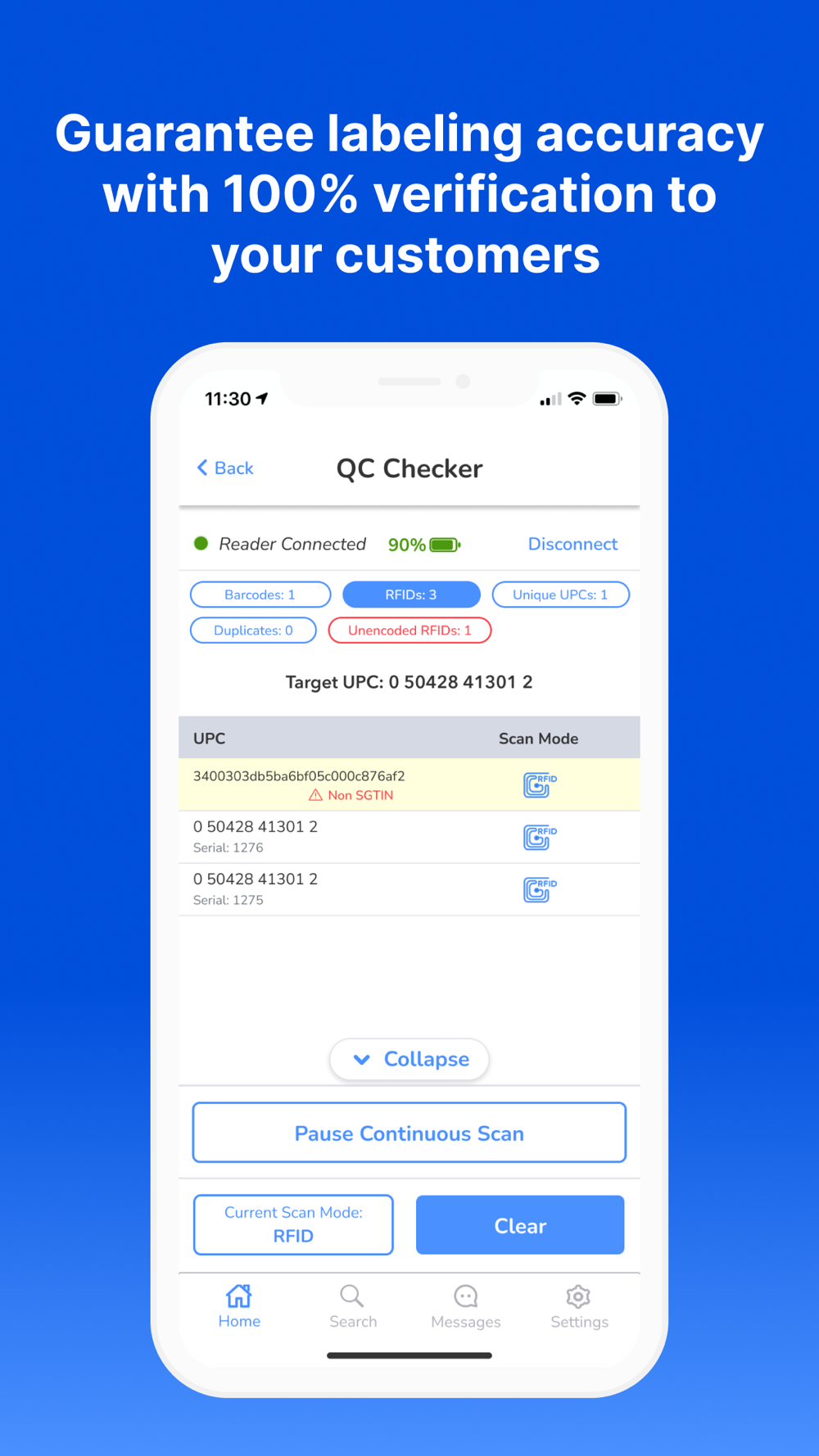 Ensure labeling accuracy and streamline your quality control processes with QC Checker, the powerful iOS app designed for retailers and manufacturers who demand top-notch quality assurance. With AsReader's versatile scanning devices and Xemelgo's cutting-edge technology, QC Checker provides fast and reliable verification of RFID label encoding, ensuring they accurately match the UPC barcode.