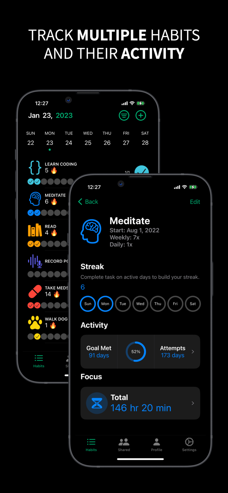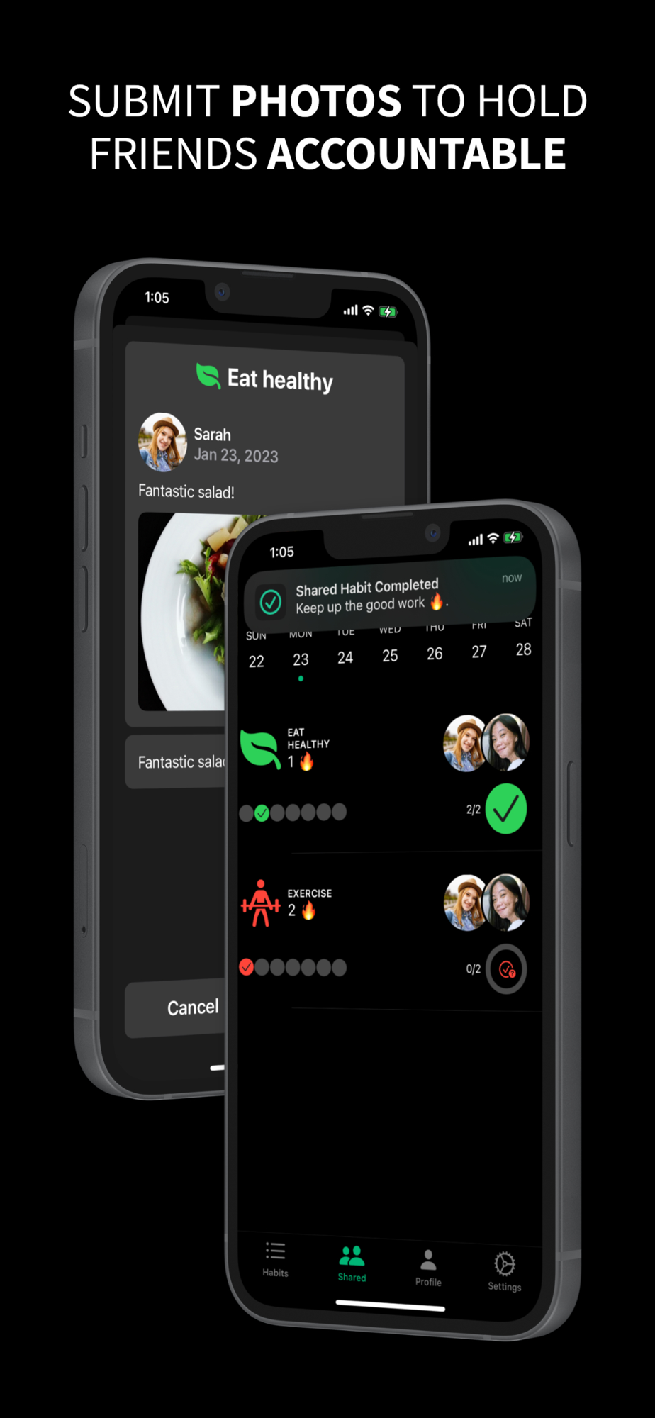 Tired of using multiple apps to track and time habits? Want an app that allows friends to hold you accountable? Then Habitat is right for you! Unlike other habit trackers, Habitat has a no-frills interface allowing you to track your progress, time each habit, and see historic data. Users also have the ability to create shared habits with their friends and submit photos when they are complete.