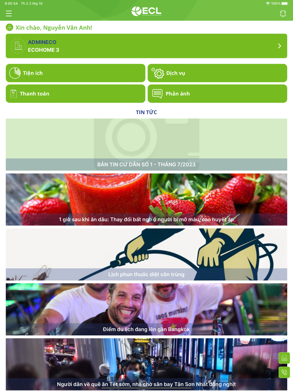 - Nhận thông tin nhanh chóng từ Ban QLTN: được cập nhật tin tức chung của toà nhà; Nhân thông báo dịch vụ; Nhận trả lời các yêu cầu từ Ban QLTN.