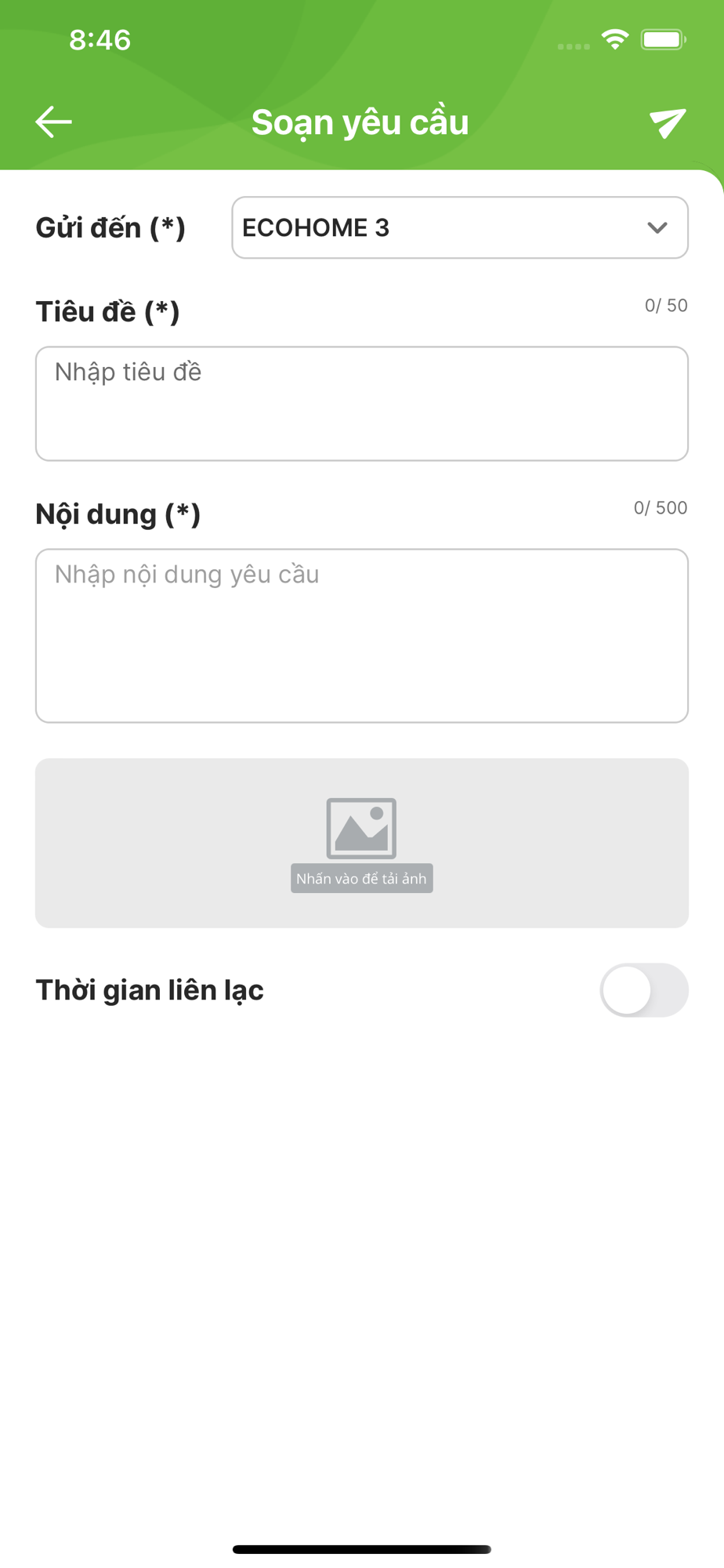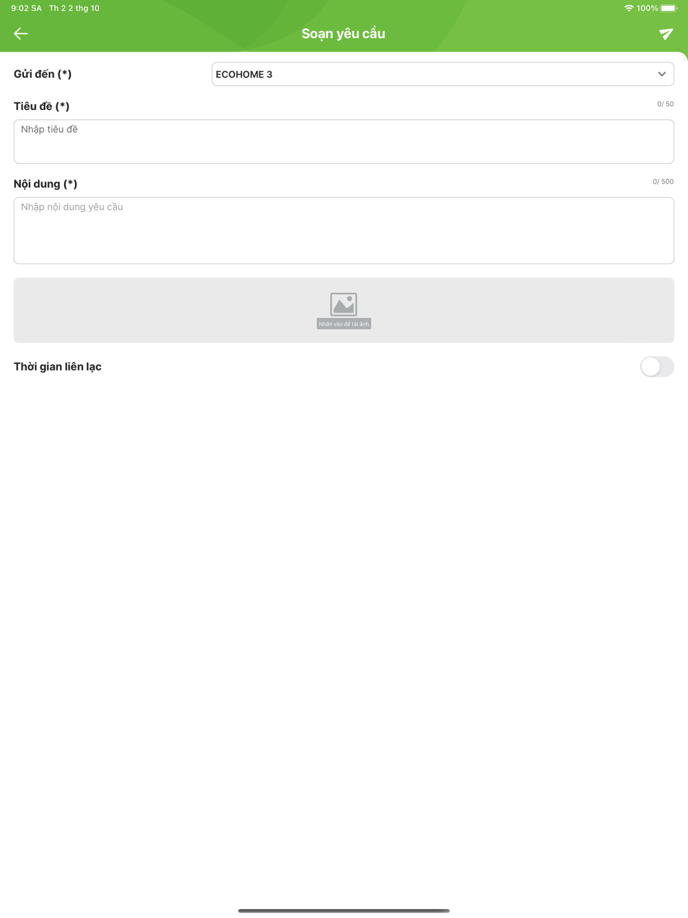 - Dễ dàng gửi yêu cầu tới Ban QLTN: Trực tiếp gửi yêu cầu, báo lỗi, sự cố về dịch vụ và chất lượng tòa nhà.