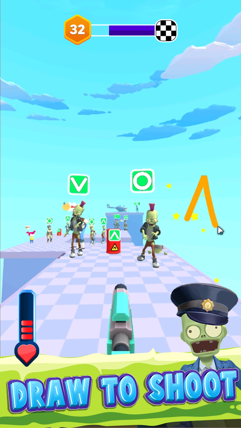 All you have to do is to draw the symbol on the head of enemies to shoot them and avoid them attacking you when they get close to you. Let's see how quickly you can draw!