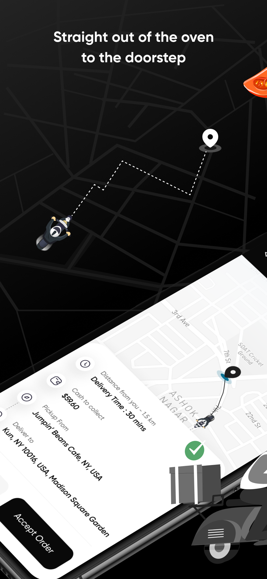 Eatance Food Delivery Driver App provides seamless real-time experience for your customers. Handling push notification for new deliveries now made easier for the delivery partners