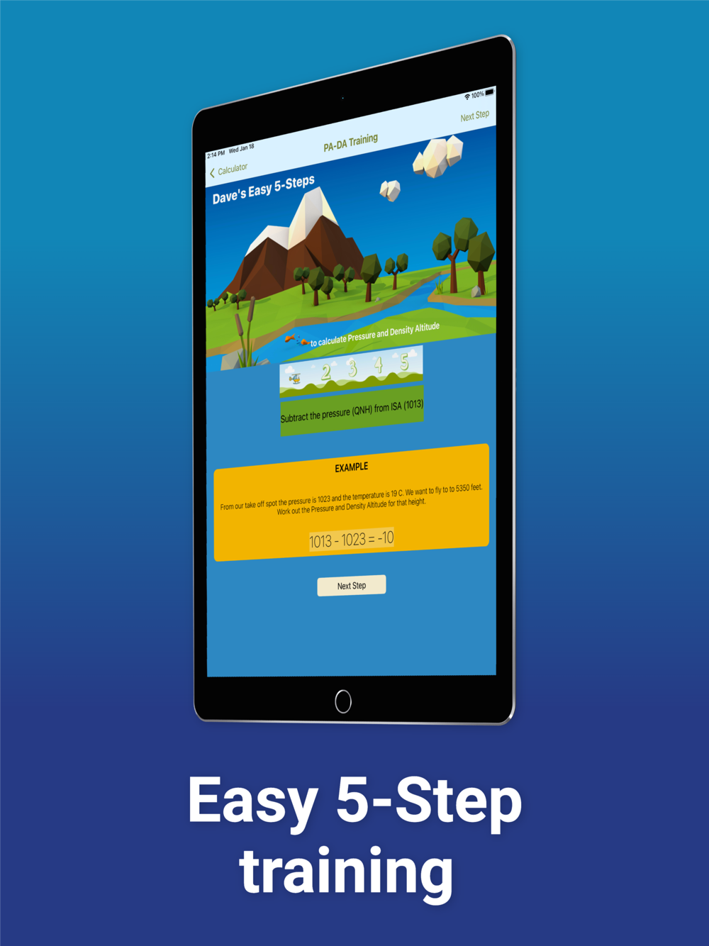 PD Altitude also has a small training section giving you an easy 5-Step process for calculating your altitudes.