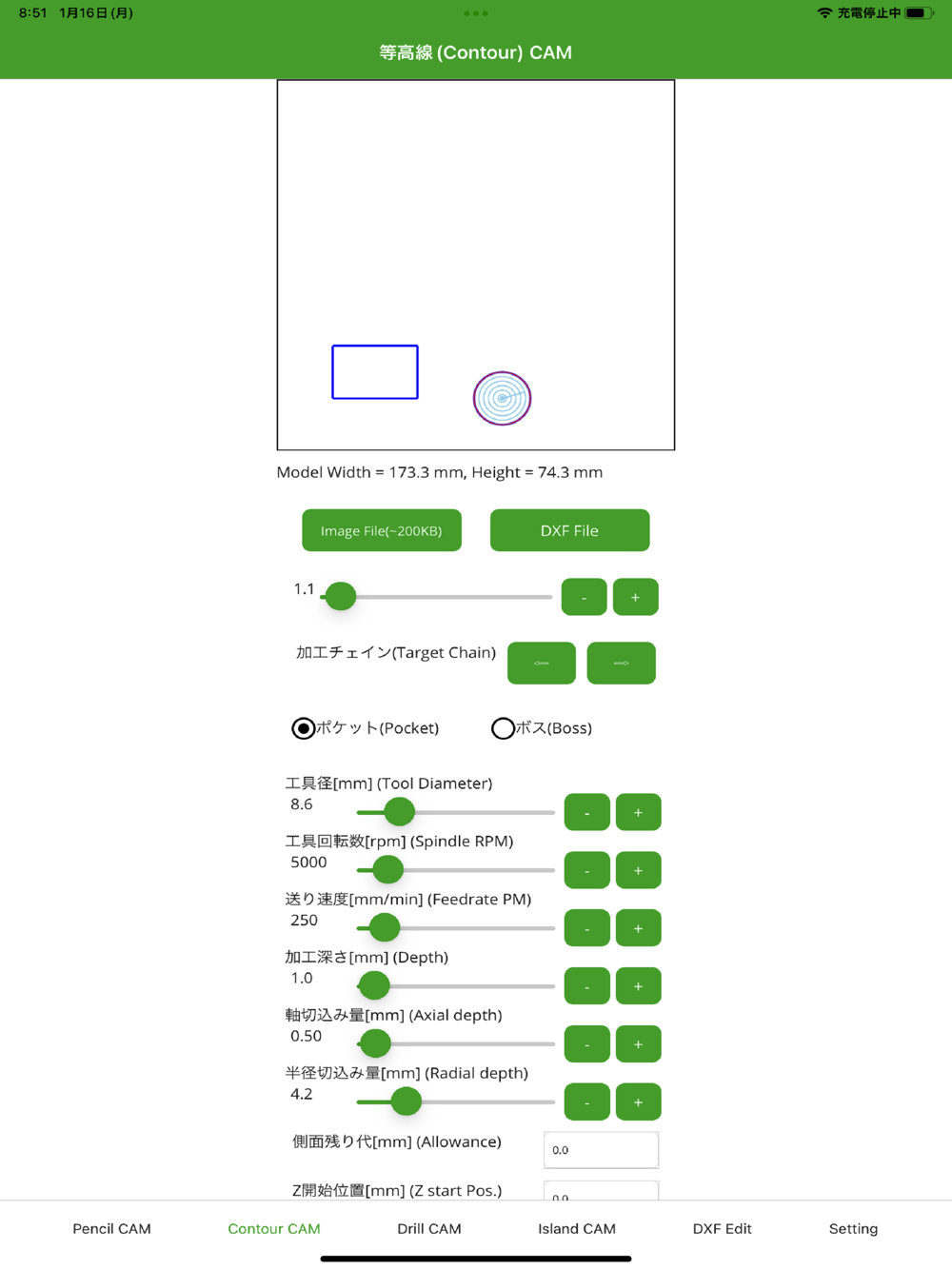This app can easily create NC program from 2D information file(DXF file, Image file).