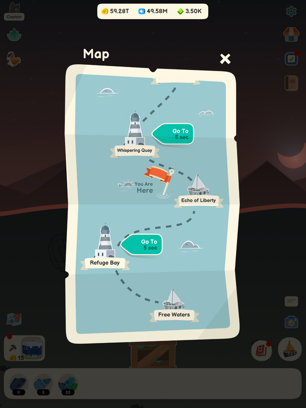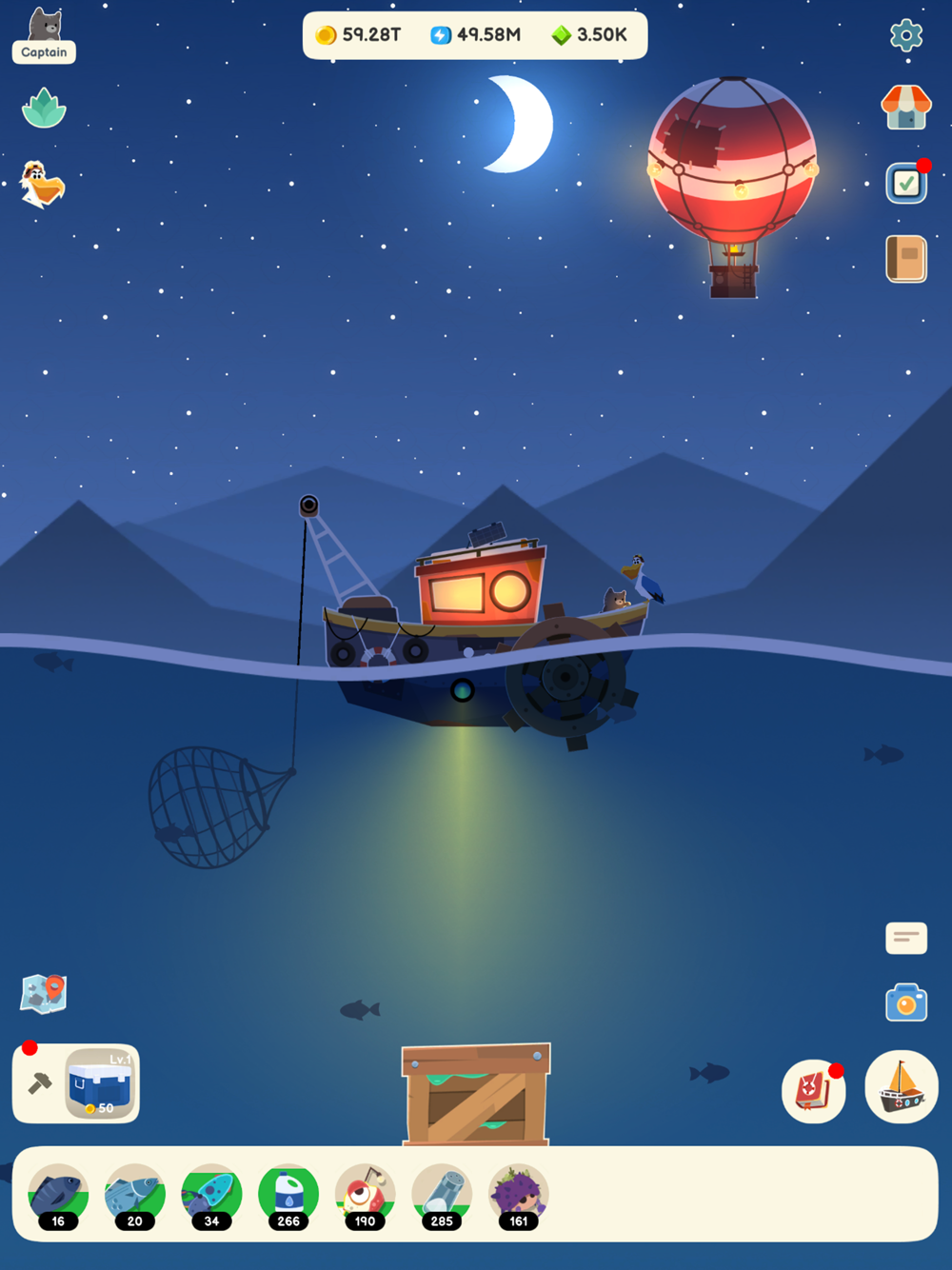 - Upgrade your ship and fishing skills to gather more fish and resources.