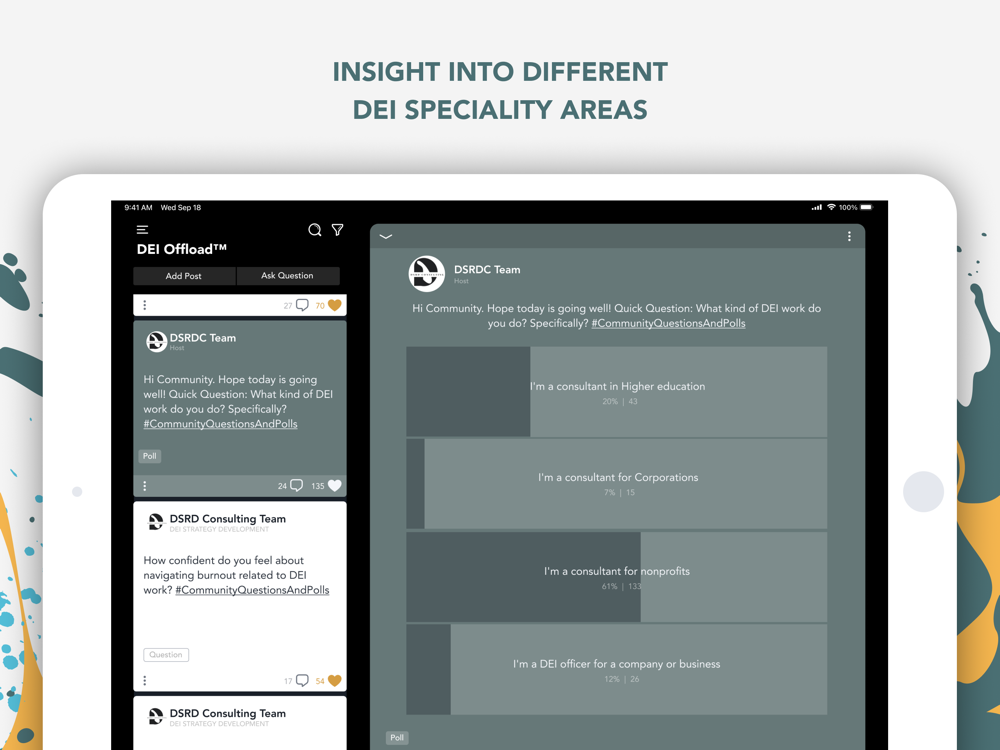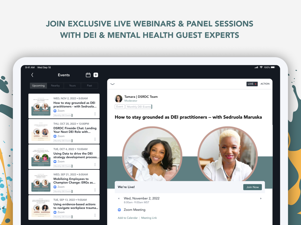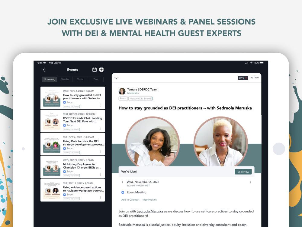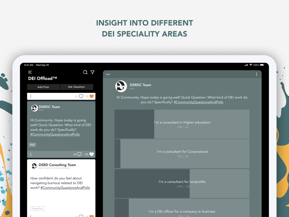 Welcome to DEI Offload™ - the ultimate space for DEI practitioners to connect and offload the heaviness of working in DEI. Built with care by DSRD Consulting, our community features a range of resources and tools to help you prioritize your mental health and strengthen your DEI skills. You'll have access to licensed mental health professionals, trainings, exclusive member events, and DEI best practice resources. Whether you're looking to build community or find support during a difficult time, DEI Offload™ is here for you. Visit our website and complete our community questionnaire to get the support you need today!