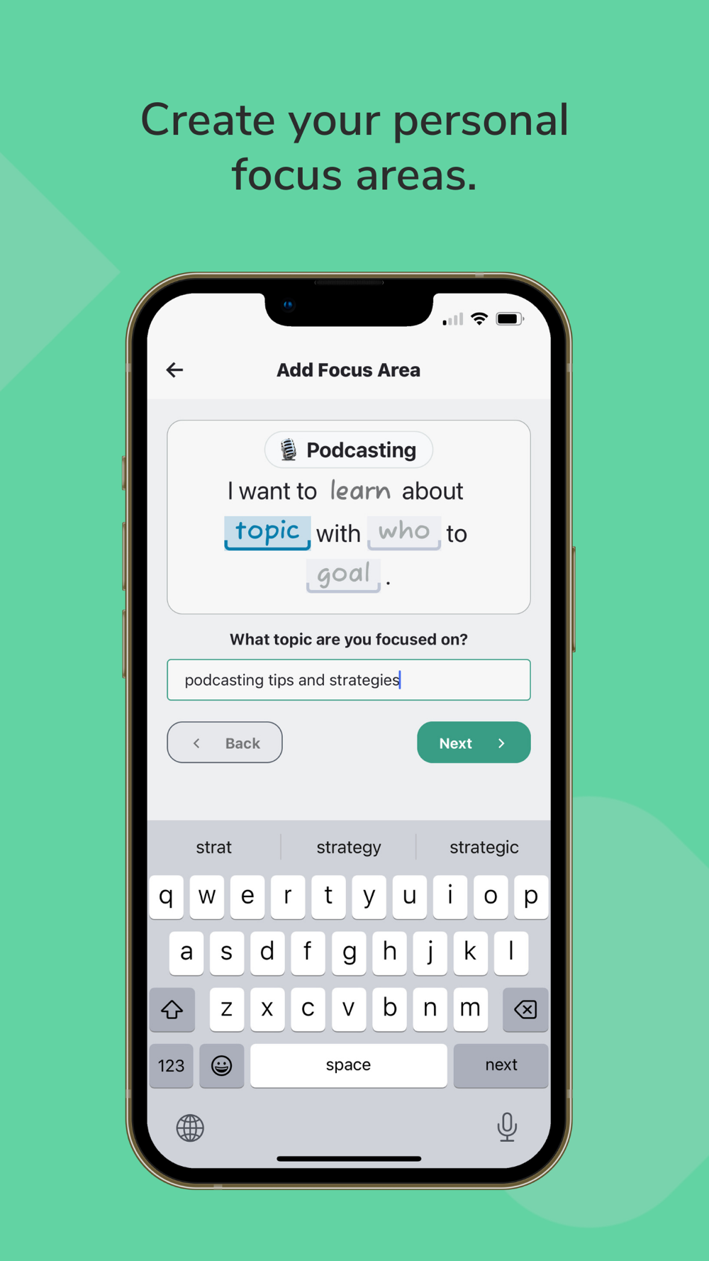 - Download the iOS app and go through a simple, guided process to create 1 to 3 focus areas you can update at any time.