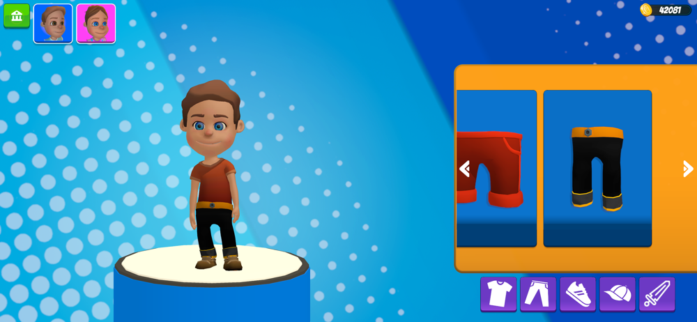 Karakterini seç, yeni elbiseler , eşyalar edin ve karakterini giydir.