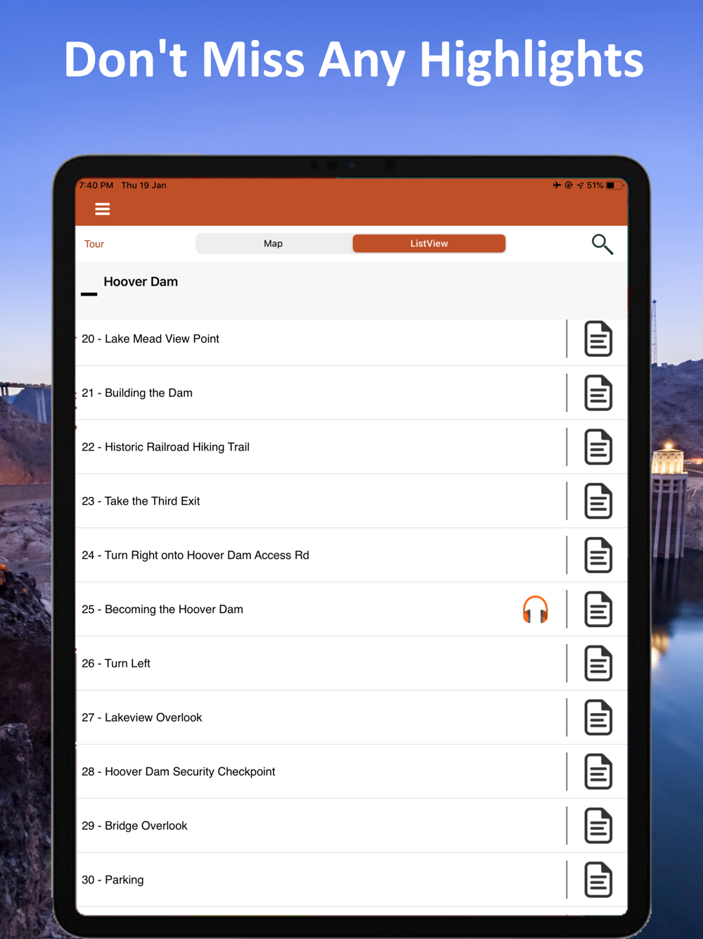 Are you ready to turn your phone into a personal tour guide? This app offers a fully-guided tour from Vegas or Arizona to the Hoover Dam - just like a local giving you a personalized, turn-by-turn, fully-guided tour.