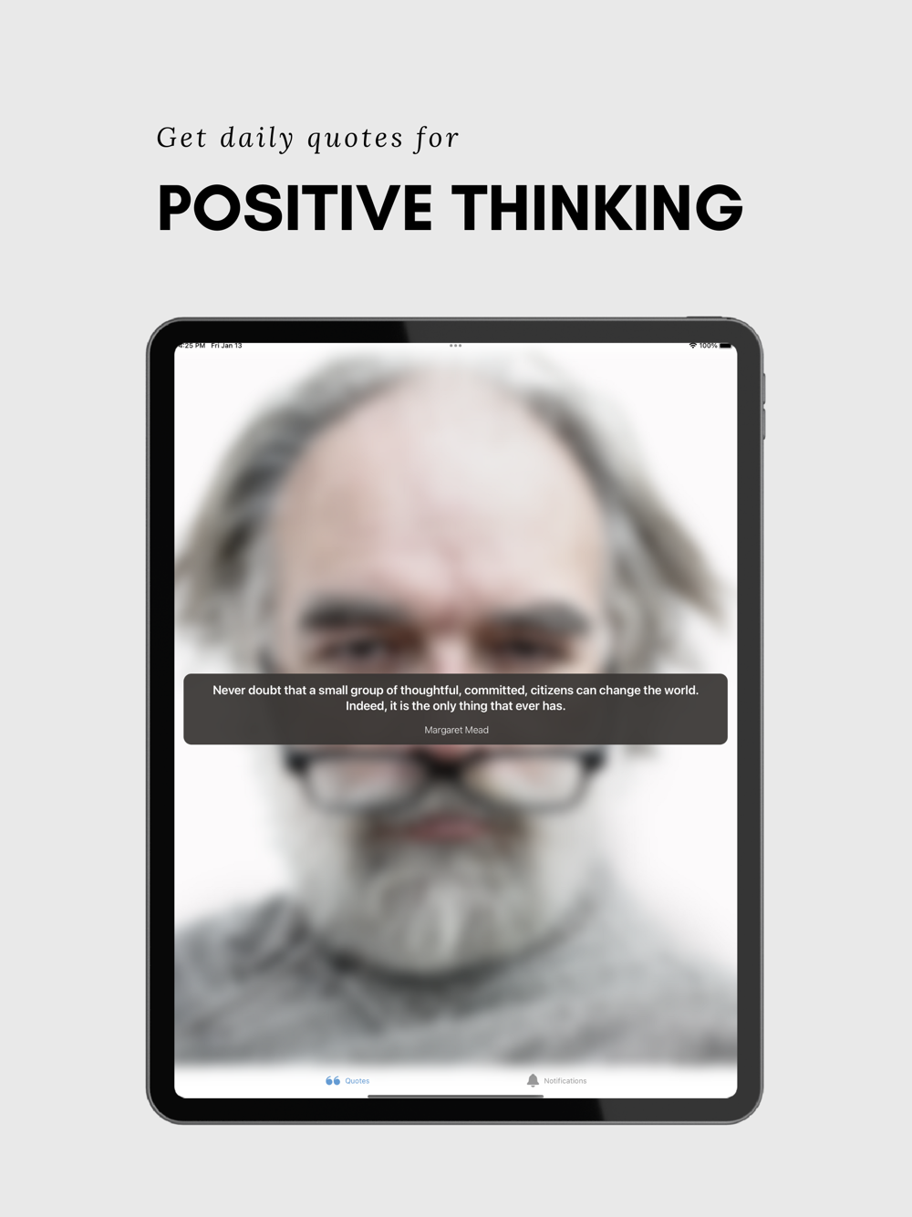 An application that helps individuals who want to get support to maintain their focus and stay positive in thought by listening or reading motivational quotes.