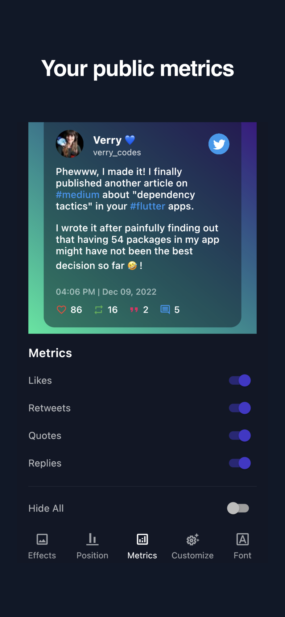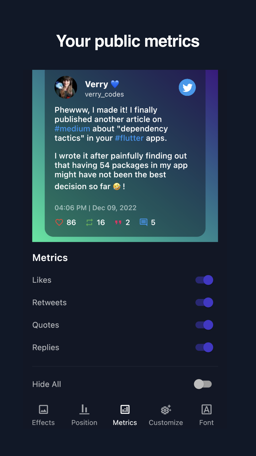 Share your Twitter post to Instagram, LinkedIn, or anywhere in a beautiful gradient image instead of a normal post