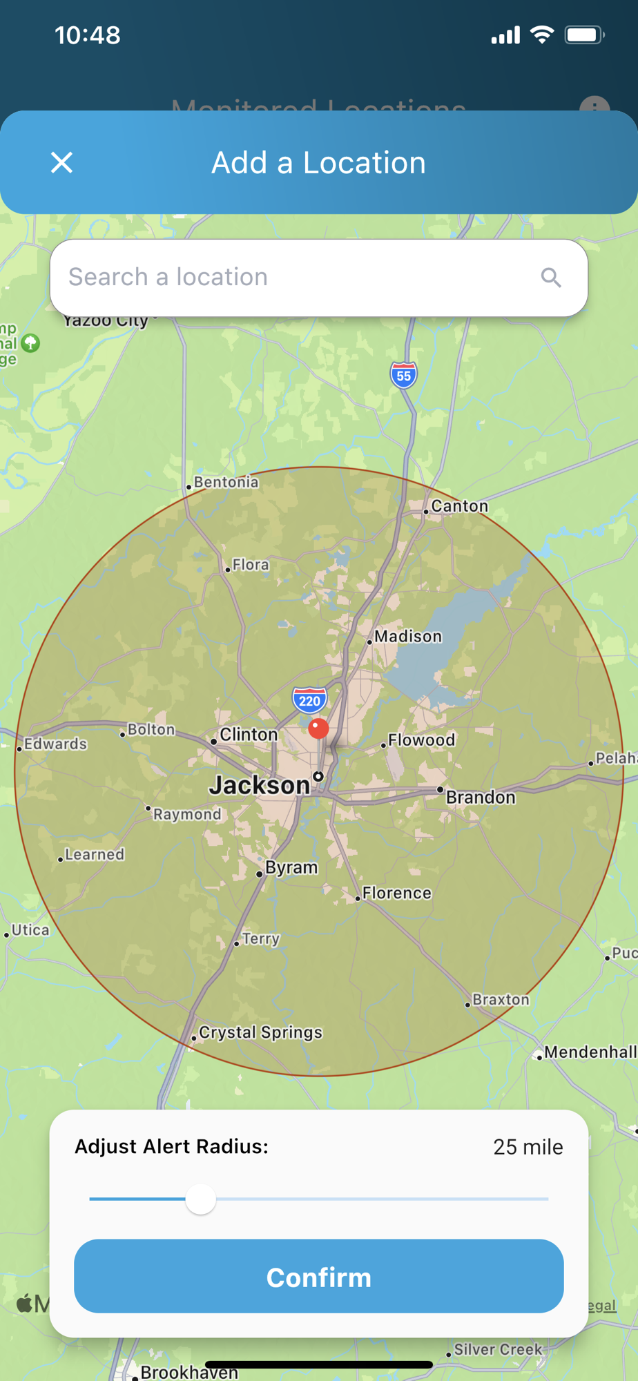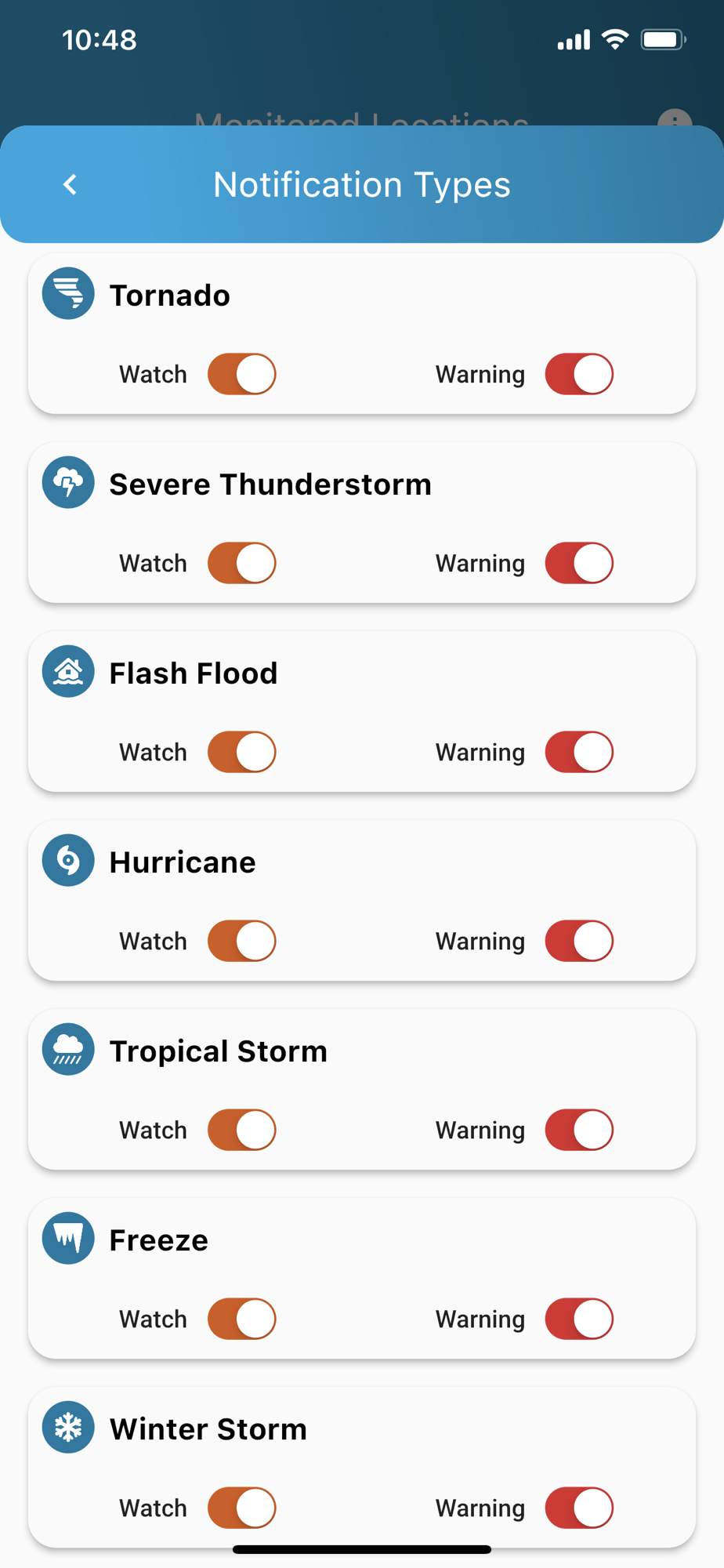 Users can pinpoint multiple locations to get specific weather watch and warning alerts sent