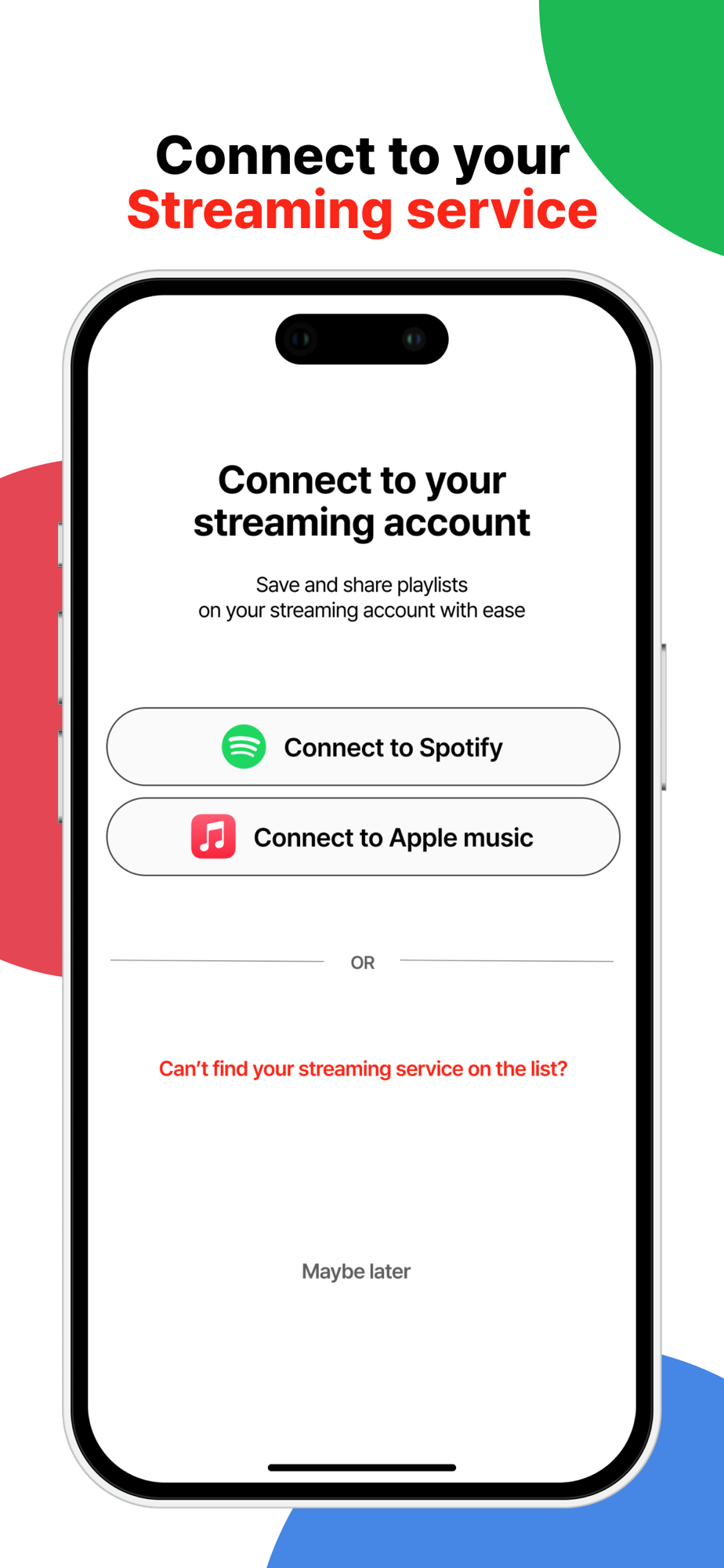 Connect to your favorite music streaming service: Login to your Spotify and Apple Music accounts and connect them with your Feelin' account. If you find a playlist that you want to listen for later, you can save any playlist with just a touch.