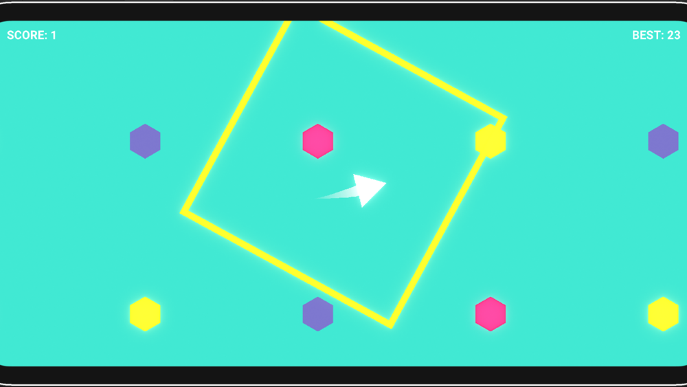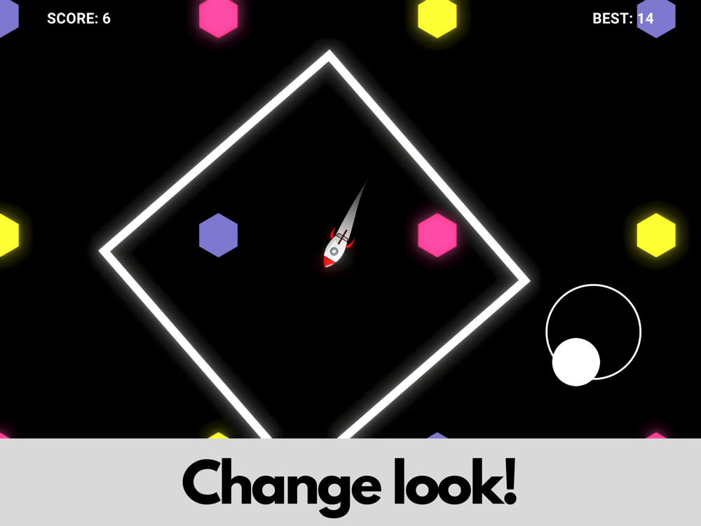 This game is about keeping triangle(rocket) inside the square as long as possible.