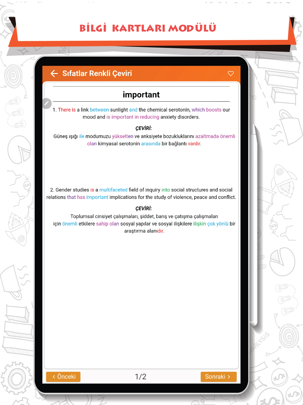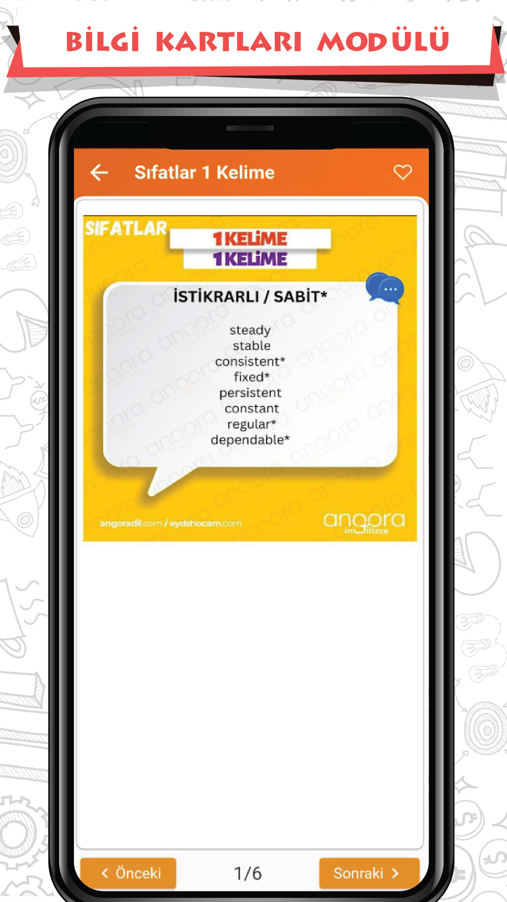 - Kelime kartlarından dileğinizi favorilerinize ekleyerek daha sonra sadece favori kartlarınızdan tekrar yapabilirsiniz