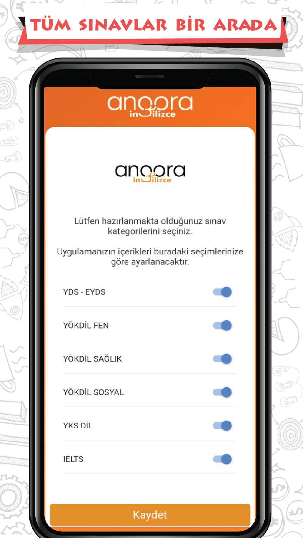 - Angora Dil tarafından hazırlanmış olan konularına ve türlerine göre sınıflandırılmış özgün ve çözümleri uygulama içerisinden takip edebilirsiniz.