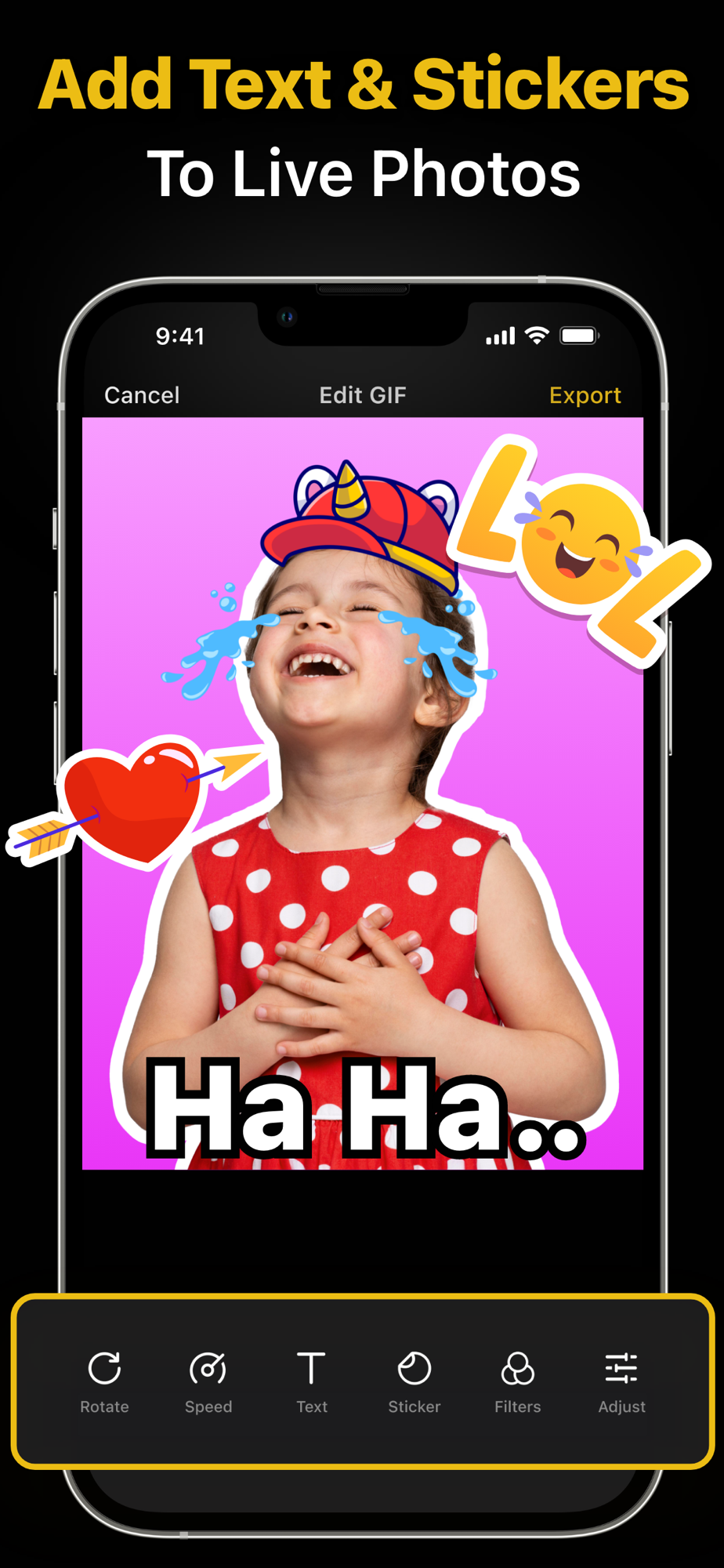 GIF Maker is the best app to make GIFs from photos, videos, and instant captures on your iPhone. Directly import from Tenor or use the GIF Creator tool to add text, stickers, adjust speed and more to make funny GIF memes to share with friends online.