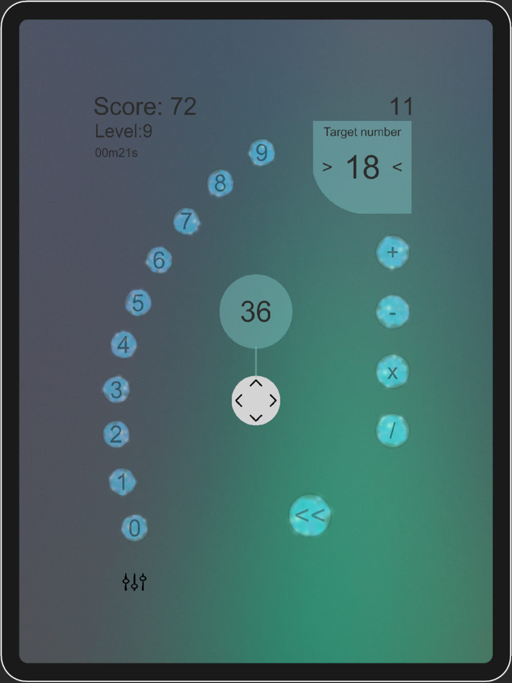 Reaching the targeted number in a limited time from easy to difficult. With the prerequisite number given to reach the number, which process and number will you use to reach the target number. You have to be gentle when choosing the numbers, but you also don't have much time. Have fun