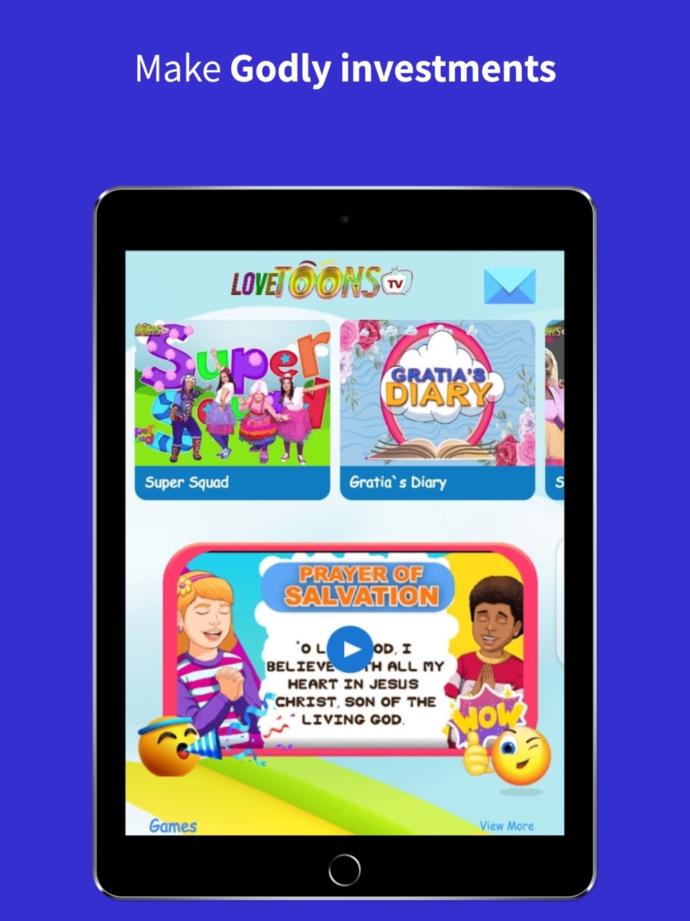 Lovetoons TV offers an array of wholesome, educating, life-transforming and engaging contents for toddlers and school-aged children in accordance to Loveworld. It features a rich blend of entertainment, music, sports and lifestyle programs with unlimited access to videos-on-demand all at the tap of your screen