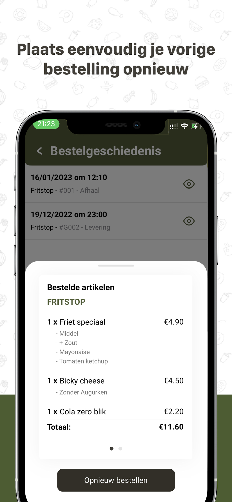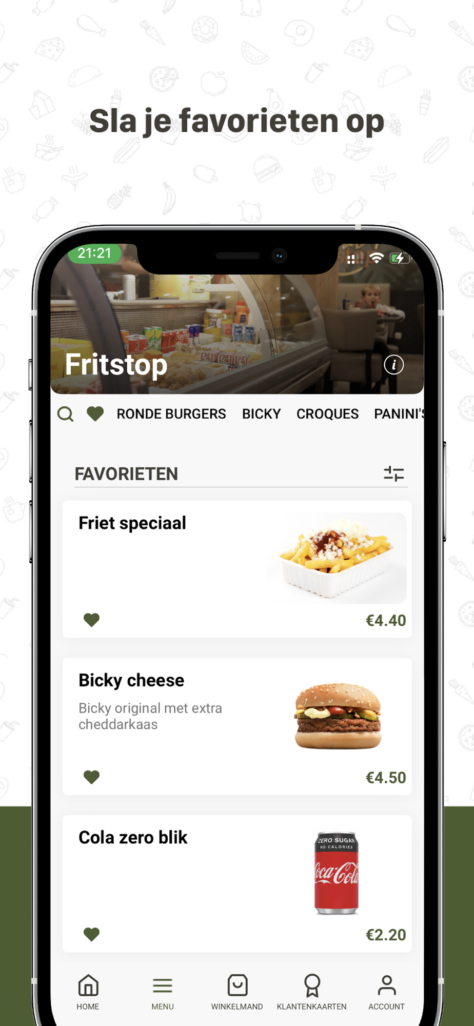 Download de app, bestel online en geniet van een heerlijke friet, trendy burger, lekker vers broodje en zoveel meer: