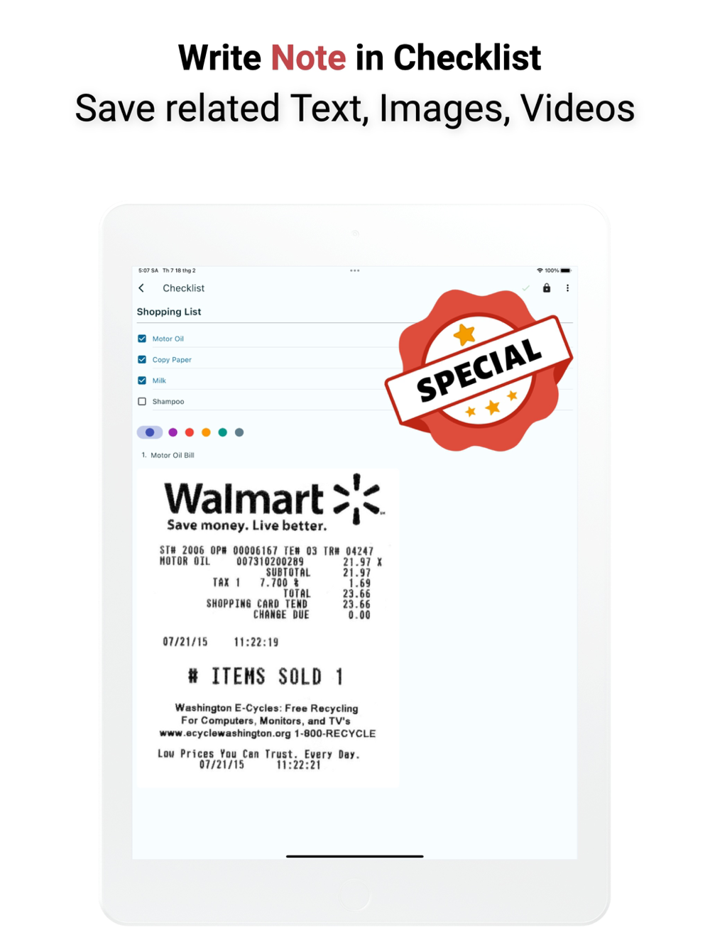 4. Checklist: Write down items and check when you have them, very convenient when going to the supermarket, ingredients of a dish or things to prepare when going on a picnic...