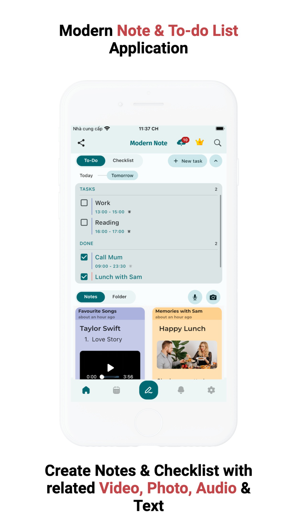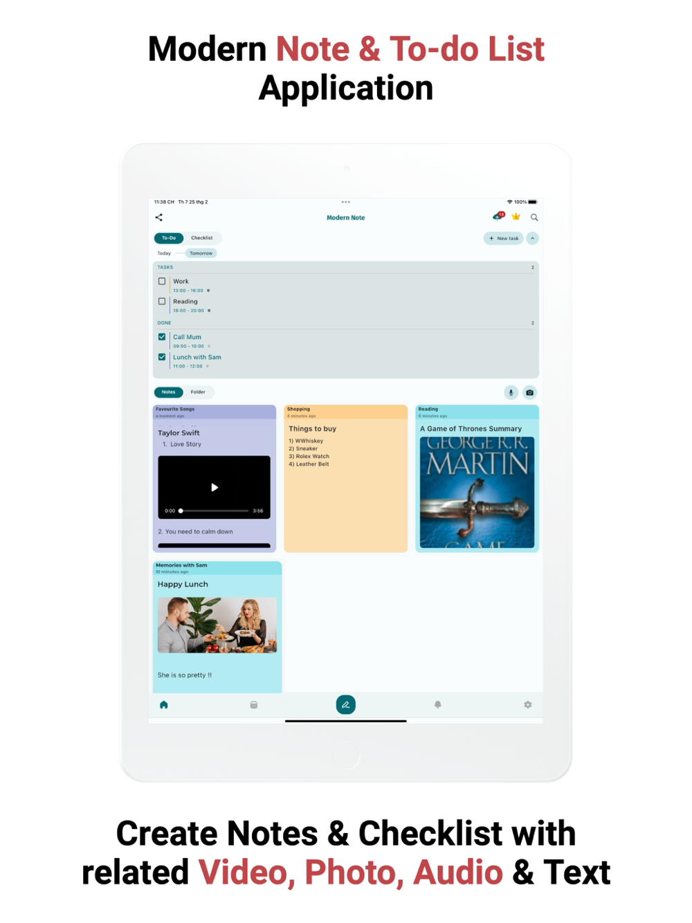 Modern Note is the leading Notes, Notepad Application with a lot of outstanding features such as easily taking notes with photos, videos or audio to save memorable moments, events or thoughts in just a few seconds.