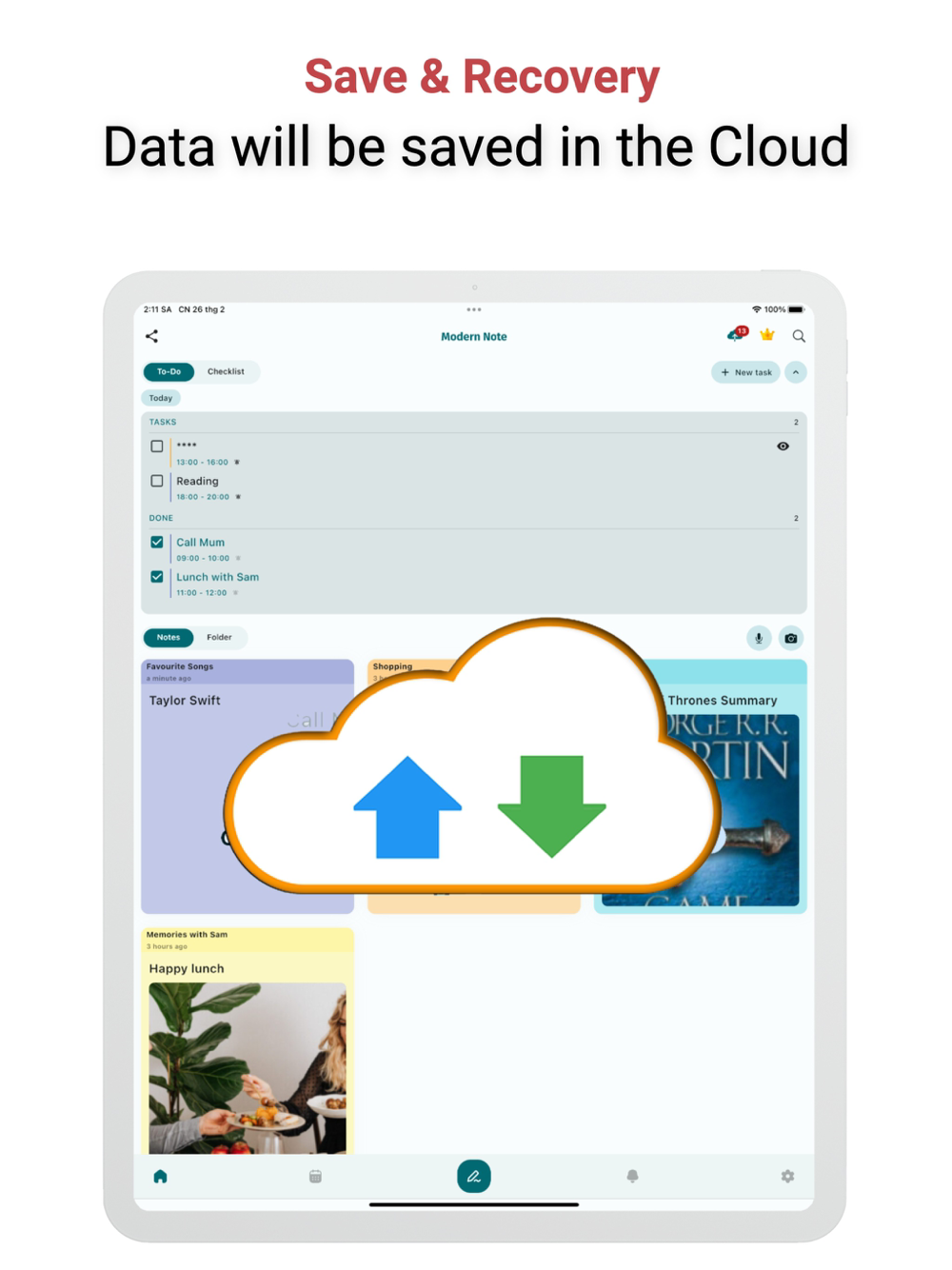 8. Sync & save Notes to Cloud, Data Recovery For Pro Account