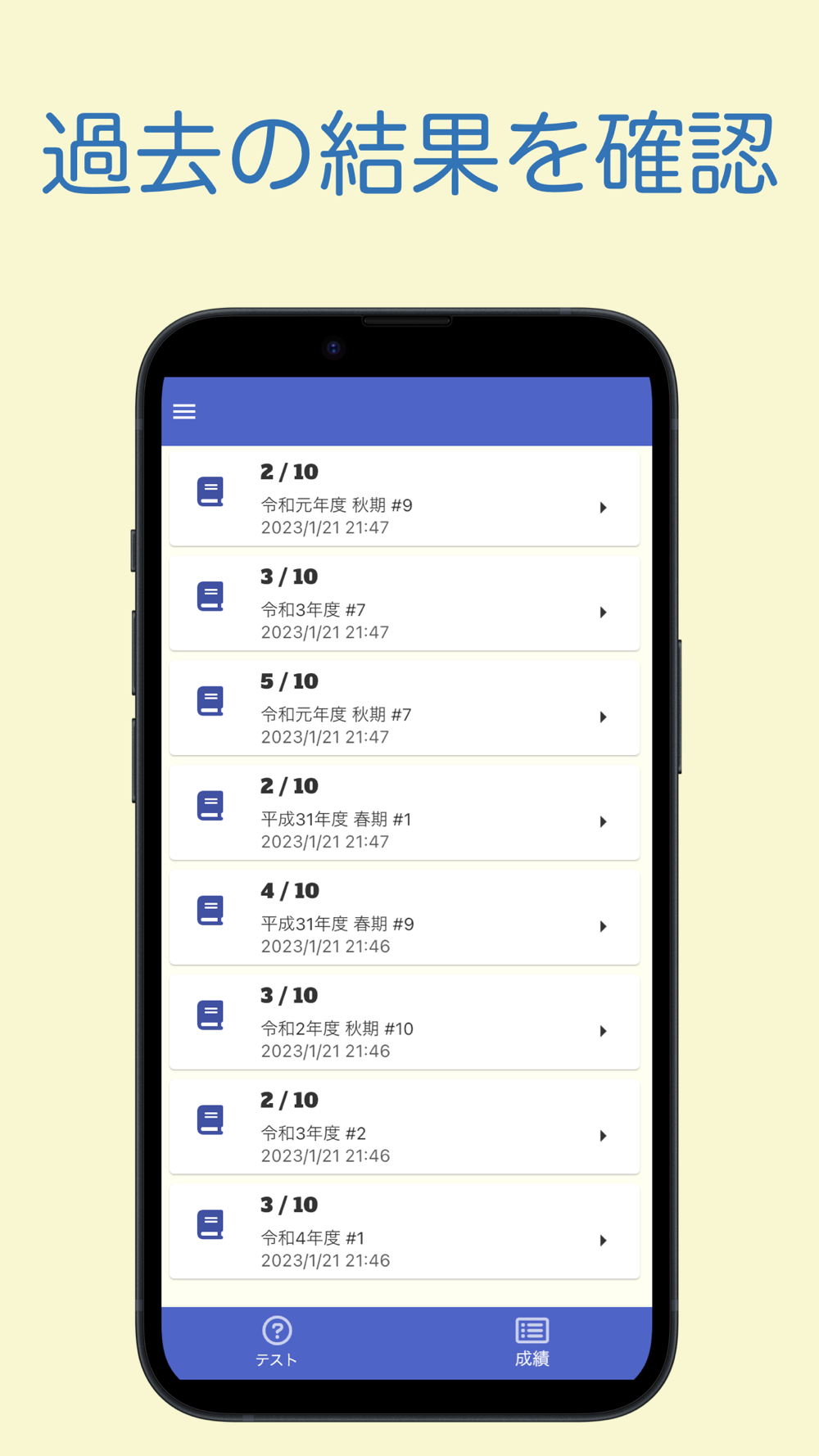 平成21年春期〜令和5年の26回分(2600問)を収録しており、過去問を年代毎に学習できます。