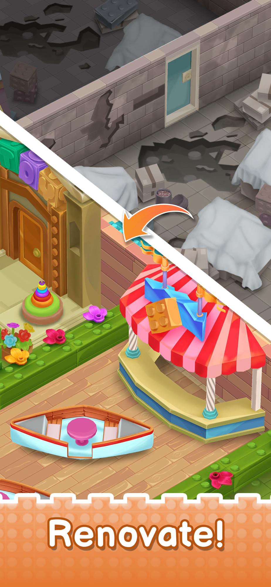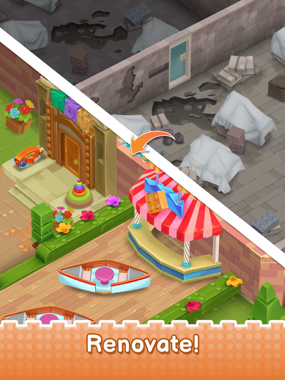 • Collect coins to restore Toy Shop and use the new tile and makeover it!