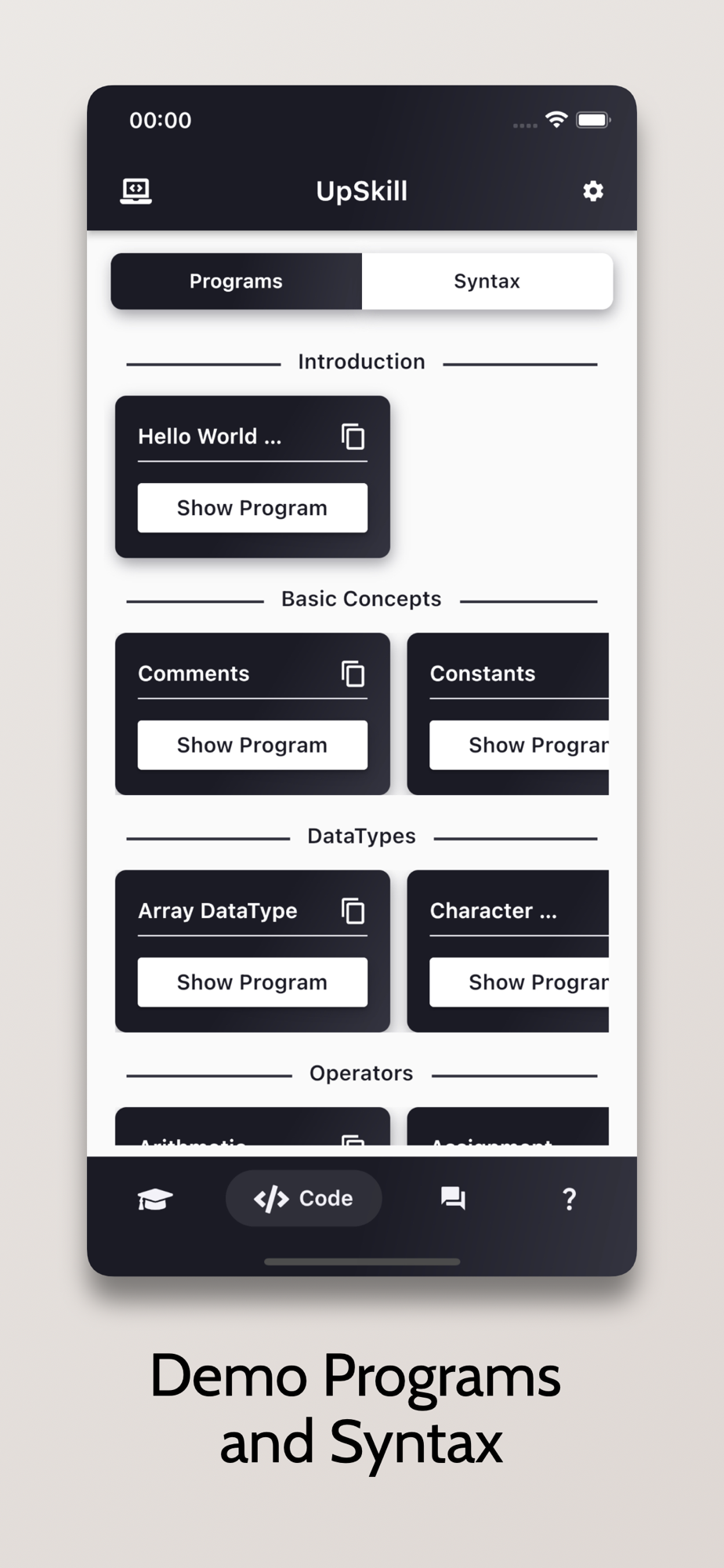 Whether you want to learn Programming as a Hobby, for School/College, or want to build a Career in the field of Software Engineering, this Tutorial suits your needs. UpSkill Tutorial covers everything from the Basics of Programming to Advanced Concepts like Data Structures. It also comes with a sleek and interactive graphical user interface.