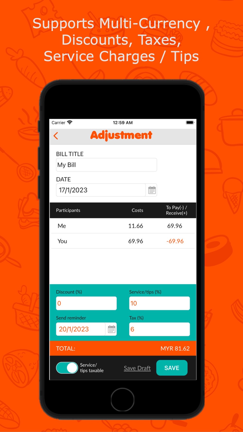 The best part about our bill splitter? It allows you to split ALL types of bills ranging from group purchases, grocery and food bills to travelling and house expenses !!
