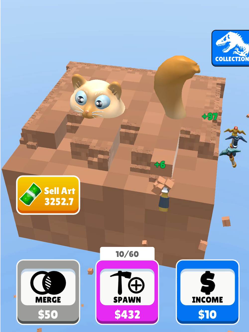 find hidden treasures by digging. Combine your pickaxes and create the strongest, fastest pickaxe. Sell the treasure you find or add it to your collection