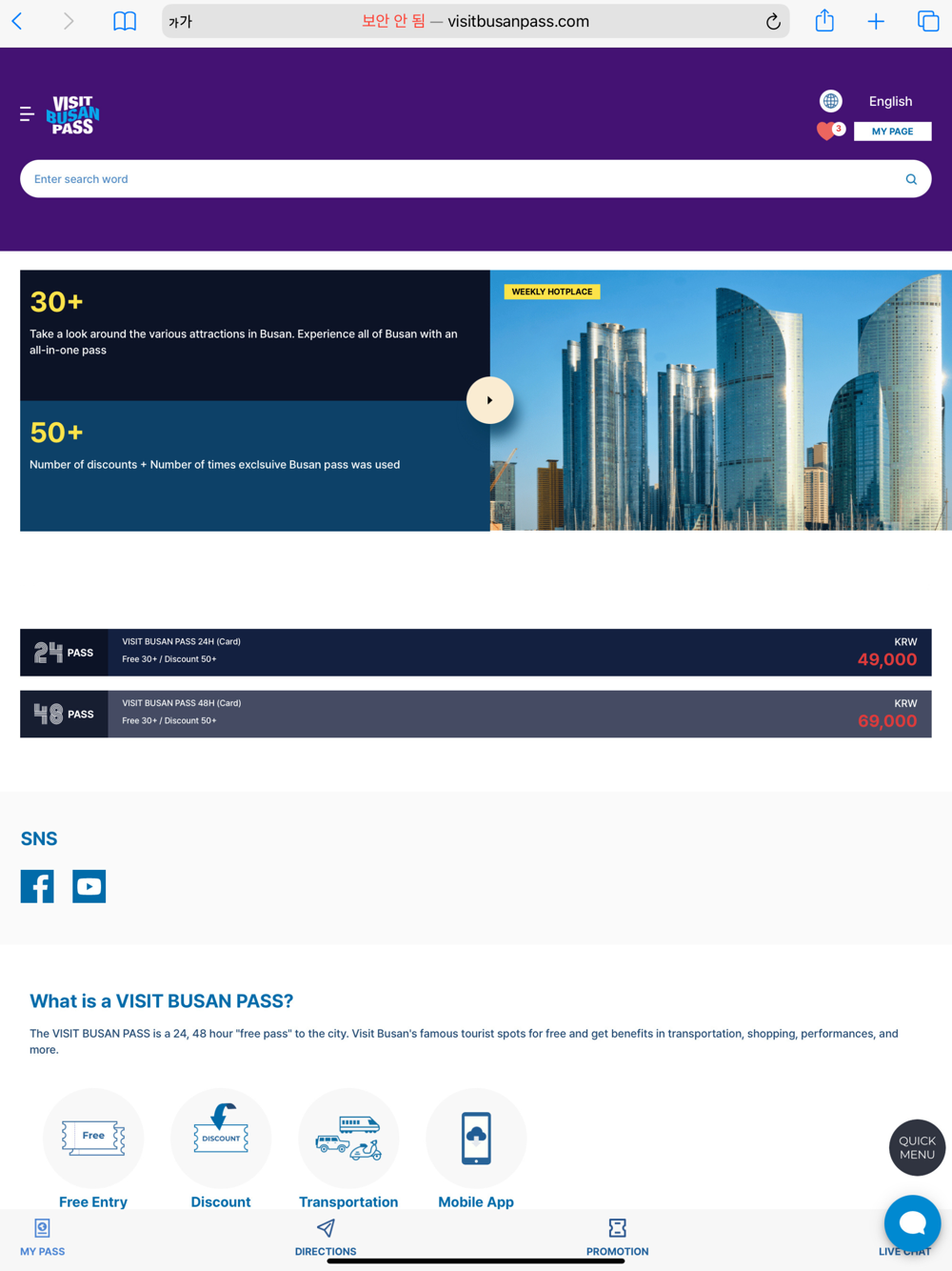 ※ For other details, please check the VBP website (https://www.visitbusanpass.com).